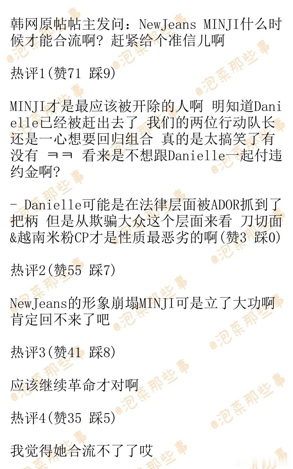 🔥韩网热帖评论翻译🔥NewJeans MINJI什么时候才能合流?韩网原帖帖主发问:NewJeans MINJI什么时候才能合流啊? 赶紧给个准信儿啊cr.pann