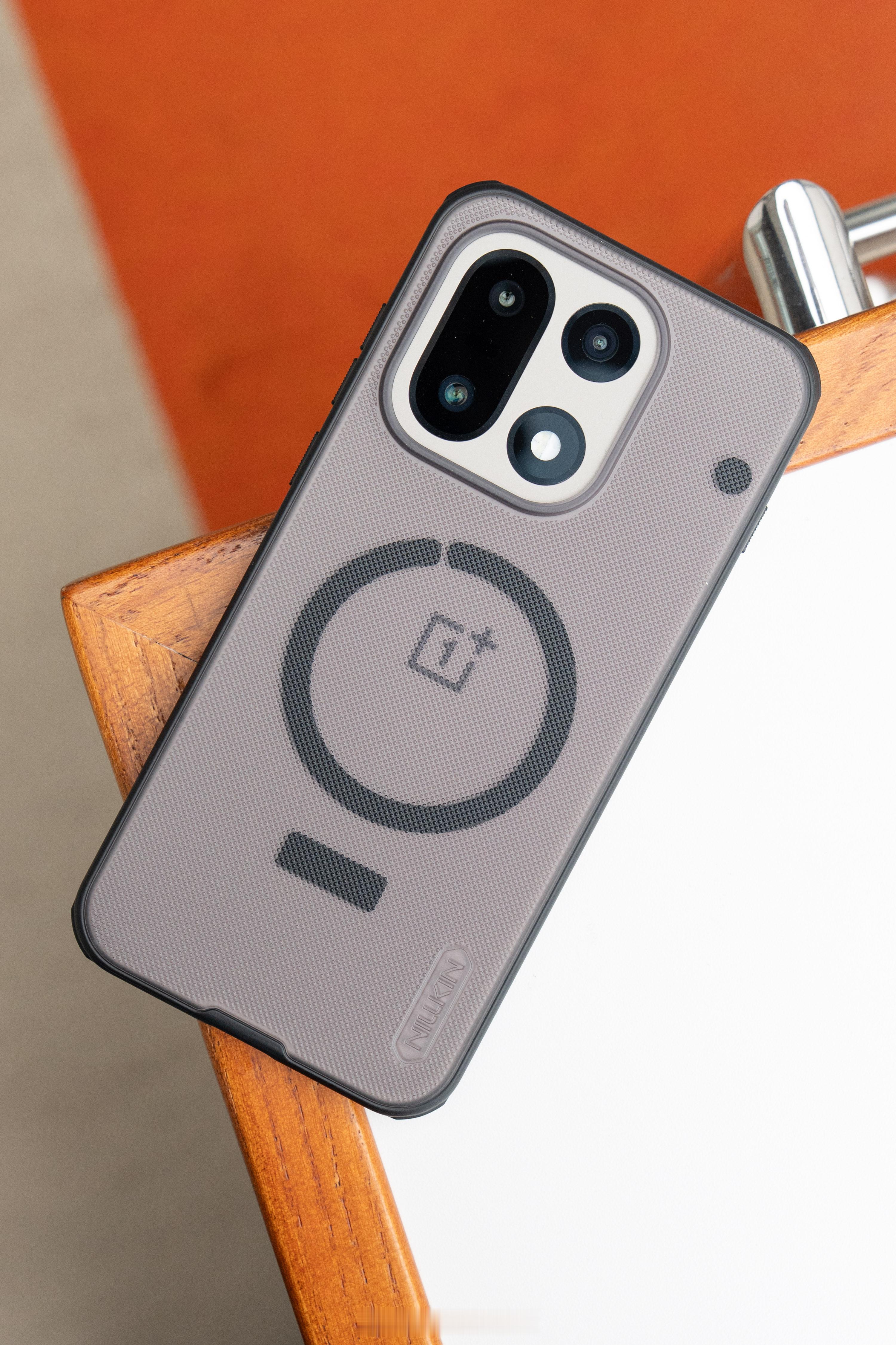 最近收到了耐尔金的一波新配件,覆盖了我常用的一加 15 和 iPhone 17 Pro Max,不得不说耐尔金配件覆盖的机型还是相当丰富而且上新得十分及时。 1️⃣ 先来说说适配一加 15 的这个手机壳,其实有「透黑」和「黑色」两种选项,我手里的是透黑的配置。 它最大的特色就是兼容了 O Mag 磁吸生态的官方特性,除了完全符合官方规范的圆环磁铁,它黑有横向的定位磁条以及上侧的「定制霍尔感应器」,由此它也能兼容磁吸快充(小圆环)等配件的特性。 得益于 N52 强磁构成的磁吸矩阵,耐尔金这个壳子的磁吸力度很强,同时它也能兼容 MagSafe 的所有配件,非常稳固。 壳体本身也延续了 TPU 软边框+PC 硬背板的设计,在软边框容易装卸且提供较好的缓冲性能的同时,也能提供较好的硬背板防护特性。背面的镜框也是稍稍高出了镜头模组,可以有效防止手机镜头 Deco 的磨损。 轻薄,磁吸,确实不错。 2️⃣ iPhone 17 Pro Max 今年最具辨识度的就是它的相机 Deco,耐尔金在延续「镜框保护」设计的基础上,将整个相机 Deco 的保护窗也做成了「支架」。 透过「保护窗」,其实它也能直接启用相机拍拍照,目前我手里的这个壳子还没有任何刮痕,所以拍出来效果还是很清晰,如果后续出现划痕影响成像的话,可能就要「开窗」再接着拍照了。但换个角度来说,有窗的保护壳,似乎能够更好地保护好采用铝合金材质的相机 Deco 呢。 保护窗合上的时候是用磁吸来完成固定,打开之后会感觉到它的铰链阻尼感恰到好处,按照官方的说法,这个支持无极角度调节的铰链也经过 2w+ 的开合测试,做工还是比较精良。 除了具备高磁力的 MagSafe 磁圈,它也没有落下定位的磁条,值得点赞。 细节上加入了一些类似机甲风的纹路,此外就是高透的透明设计,可以还原 iPhone 17 Pro 系列极具辨识度的外观。 3️⃣ 手机磁吸生态里最常用的一个配件,无疑就是「磁吸环」。而耐尔金今年推出了全新的「纤磁环」配件,我觉得特别有意思。 它采用了「三段式」的设计,在原本两段式的磁吸指环的基础上,在加入了一个轴心,实现了双轴线三环的展开的设计,既保留了指环的功能,又延展出了支架的特性。 而且为了更易用,它还提供了双轴 360° 旋转+无极角度调节,兼容了横屏或竖屏的多个角度的使用,日常用起来更能找到理想的支撑位。 整体质感也很吸睛,主体采用了 6 系航空铝材质,再用芳纶纤维作平面的表层覆盖,手感非常细腻,橙色配色也非常吸睛。最令我欣喜的是,它特别提供了「双面磁吸」的能力,也就是说不摘下磁吸环的情况下,它也能接着磁吸到诸如车载磁吸支架、MagSafe 卡包等配件。如果恰好有拍摄需求,其实它也能吸附在铁质表面上,充当一个临时的三脚架。这个好物闭眼入 耐尔金Magsafe磁吸凯