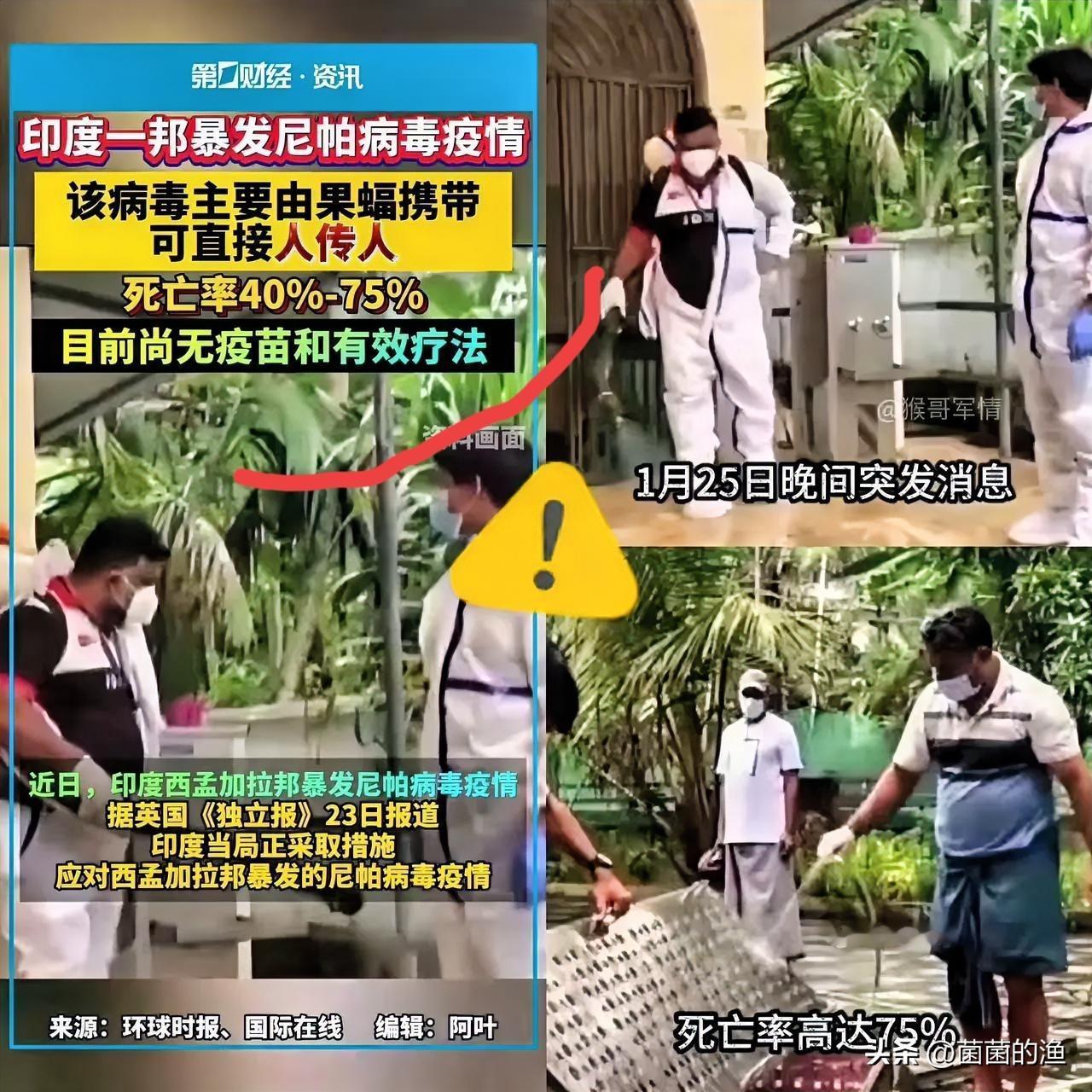 印度这次真是摊上大麻烦了!尼帕病毒搞出大动静,世卫都拉响警报,说可能搞成全球大流行。这病毒已经确认能气溶胶传播,传染力暴涨15倍,人传人简直太容易。更吓人的是死亡率超7成,比德尔塔新冠猛20倍,妥妥符合x疾病特征。不光人传人,还能在动物和人之间跳来跳去,光隔离人根本不够用。 最新进展令人心惊:印度某邦近日新增病例已超千例,死亡率高达72%,病毒已向周边3个邦扩散,并出现向东南亚多国输入的疑似病例。印度卫生条件本身就差,病毒在脏乱差的环境里疯狂滋生,现在一邦已经爆发病例。人要是接触了带病毒的动物或动物排泄物,分分钟中招。专家都说输入风险很难避免,各国都得绷紧神经守国门啊!
