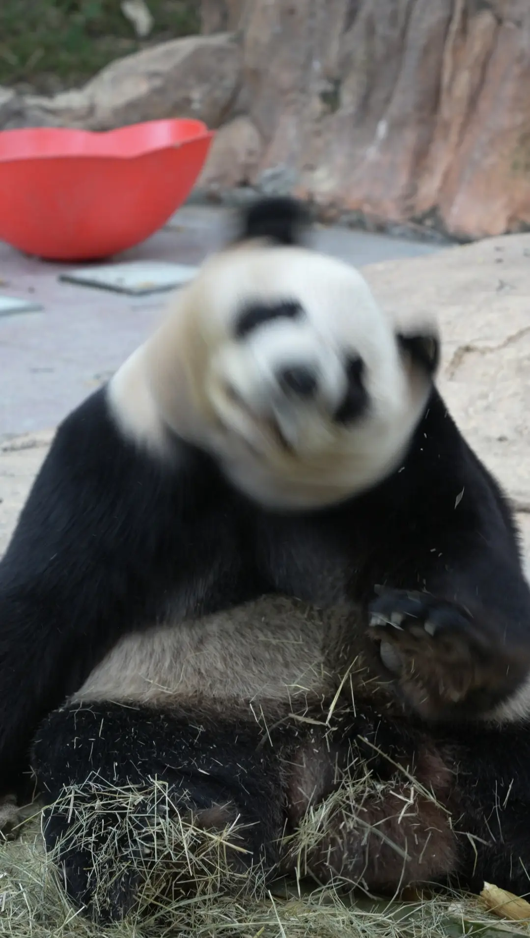 久久看起来发型有点潦草,耳朵真的像刷子。(头发潦草,也比那光头的同事好...