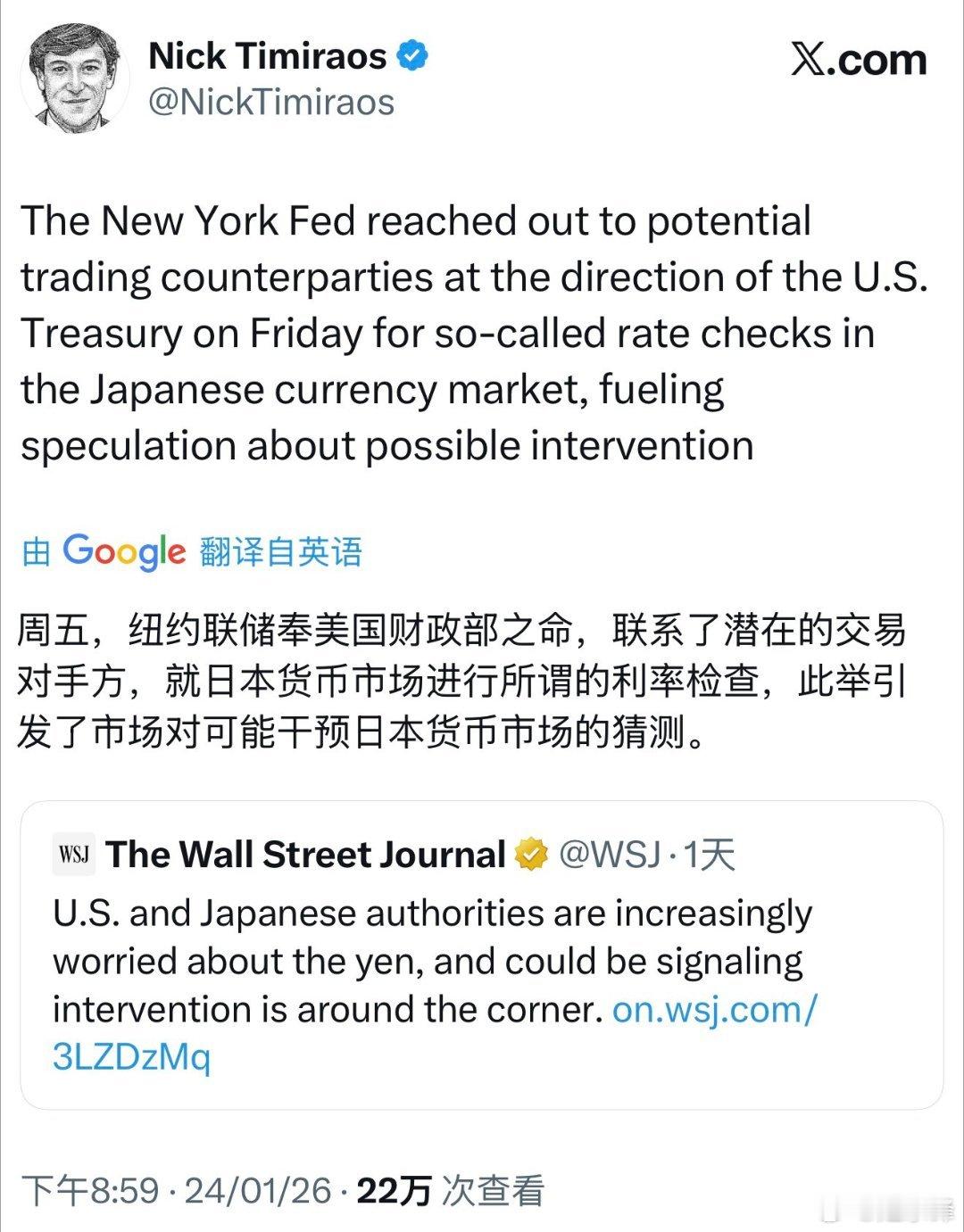 美日联手干预疑云再起,市场屏息以待时隔一月,日元汇率与日本长债收益率再度联手搅动全球市场。随着本周美元兑日元汇率逼近160关口,日本30年期国债收益率亦触及3.76%的历史高位,美日当局似乎已准备联手干预汇率。160关口不仅是日本财务省与日本央行的心理防线(去年多次干预的水平),其突破更可能引发日本国内政治动荡。而日本长债收益率的飙升,显示出市场对日本财政纪律的担忧,这已引发美国方面的高度警惕——担忧日本金融机构为弥补国内亏损而抛售美债,进而冲击美国国债市场。市场剧烈反应: 汇率检查(Rate Check): 本周五,纽约联储向金融机构询问大规模日元交易成本,这一典型的“汇率检查”动作被视为官方干预的强烈前兆。资产波动: 消息一出,日元兑美元迅速反弹约2%,而日经225指数期货则相应下跌约2%,显示出市场对干预带来的日元升值及资本外流的担忧。官方释放强硬信号:日本首相高市早苗在今日(周日)的党首电视辩论中强硬表态,虽不应评论市场决定事项,但政府将“采取一切必要措施应对投机性和极度异常的波动”。尽管未明确针对汇率或债市,但此番言论与当前市场压力节点高度契合,极大强化了官方干预的预期。为何美国“开绿灯”?与以往不同,此次美国态度转变的核心在于风险溢出。美国财政部担忧,日本债市动荡可能引发日本投资者抛售美债,直接推高美国借贷成本。因此,协助日本稳定市场,本质上也是在维护美国自身的金融稳定。后续关注与潜在影响:1. 关注周一开盘: 若周一有进一步实质干预措施,将进一步支撑日元,但也可能加剧市场避险情绪,给美股及加密货币市场带来短期压力。2. 波动性加剧: 若美日最终联手干预,叠加下周多家重量级科技股发布财报,宏观政策与微观业绩的双重博弈将显著放大市场波动。投资者需保持高度警惕,谨慎应对。