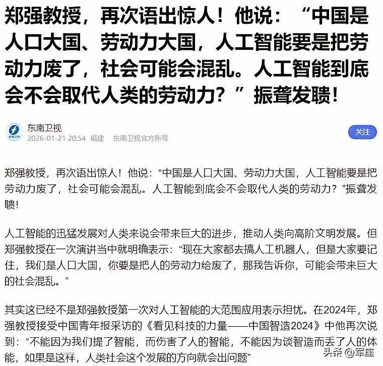 郑强教授那句“把劳动力废了,社会可能会混乱”,不是危言耸听。再先进的技术,也要能