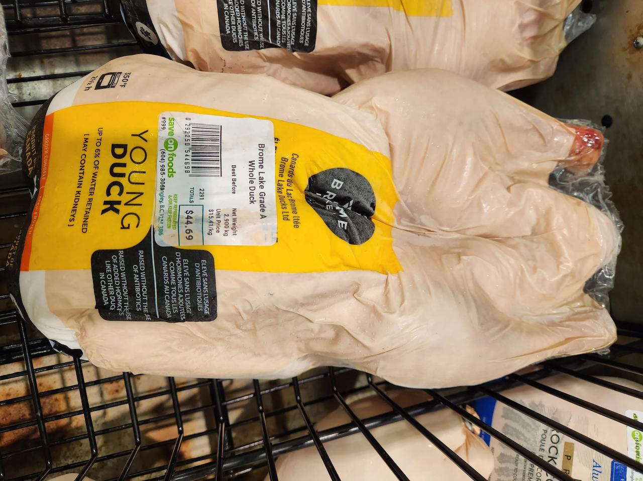 加拿大的鸭子太贵了。 鸭子是一种禽类。 作为一个南京人,天天都要吃鸭子。可是加拿大的鸭子太贵了。如图这么一个冻鸭子,要44加币,就是220人民币,这是要抢钱啊。 加拿大人吃牛肉,不吃鸭子。但他们也不怎么吃猪肉,猪肉很便宜啊,一斤就人民币十元,为什么鸭子这么贵? 加拿大