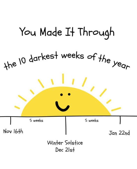 【一年中最黑暗的时期已经过去。长达十周的极昼终于结束了。1月22日之后,白昼时间开始增加——所以是时候开始告别季节性抑郁症了🌅】