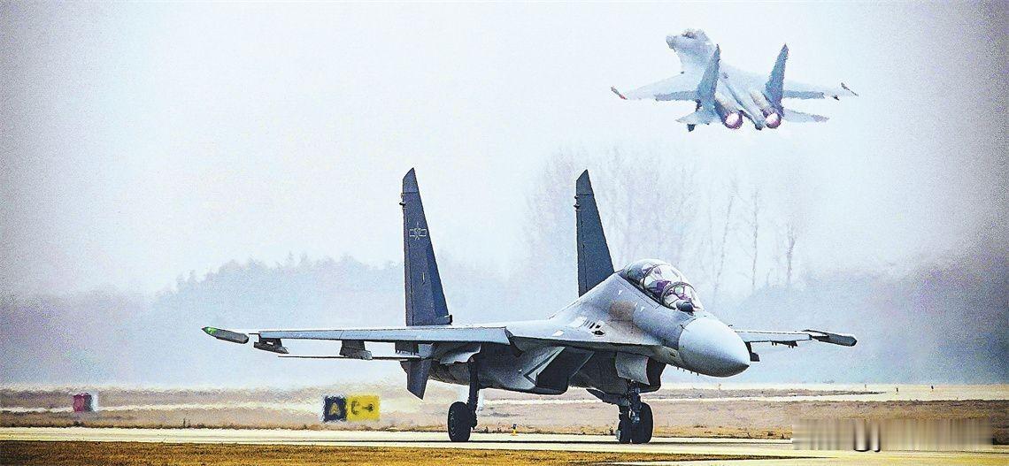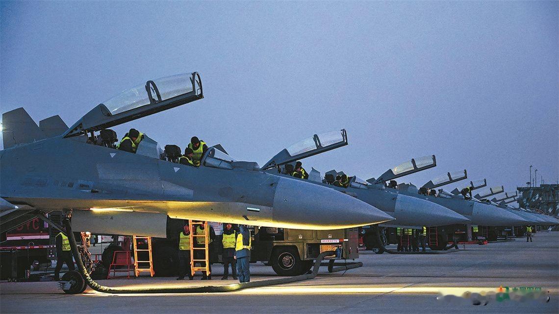 空军航空兵某旅进行多课目飞行训练。图中的战斗机是歼-16吗?看机头的雷达罩颜色感觉是不是经过升级的歼-11BS呢?但又看不到空速管。所以应该还是歼-16。空军侧卫系列战机中双座的有四种,苏-27UBK和苏-30MKK,这两种战机的雷达罩是黑色的(苏-30MK2是白色的)。歼-11BS和歼-16是灰色的,前者的灰色要比后者深一些,但歼-16没有空速管,但歼-11B系列是有空速管的。所以可以断定这个航空旅装备的是四代半战机歼-16。