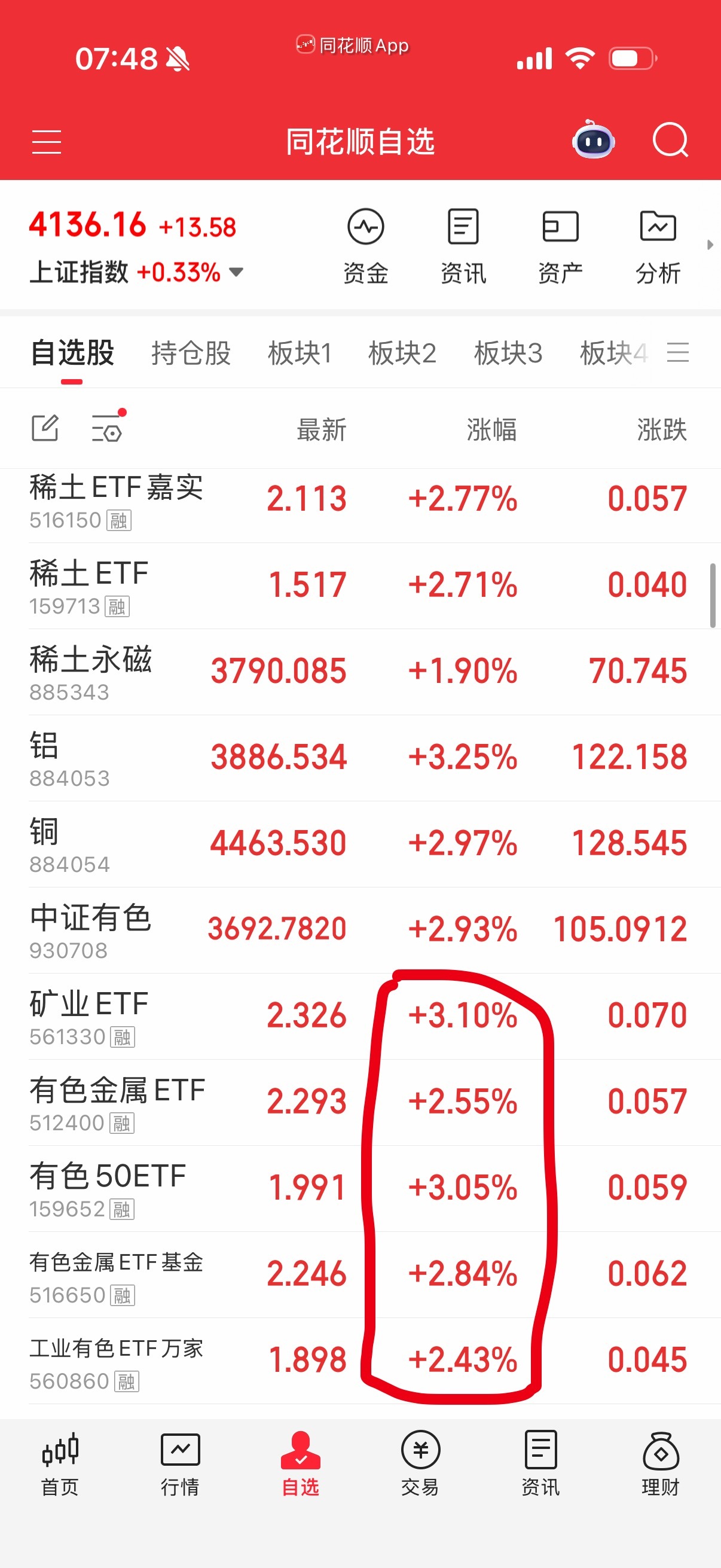 我没买有色,有色指数涨4点了。你们有有色的高兴了。