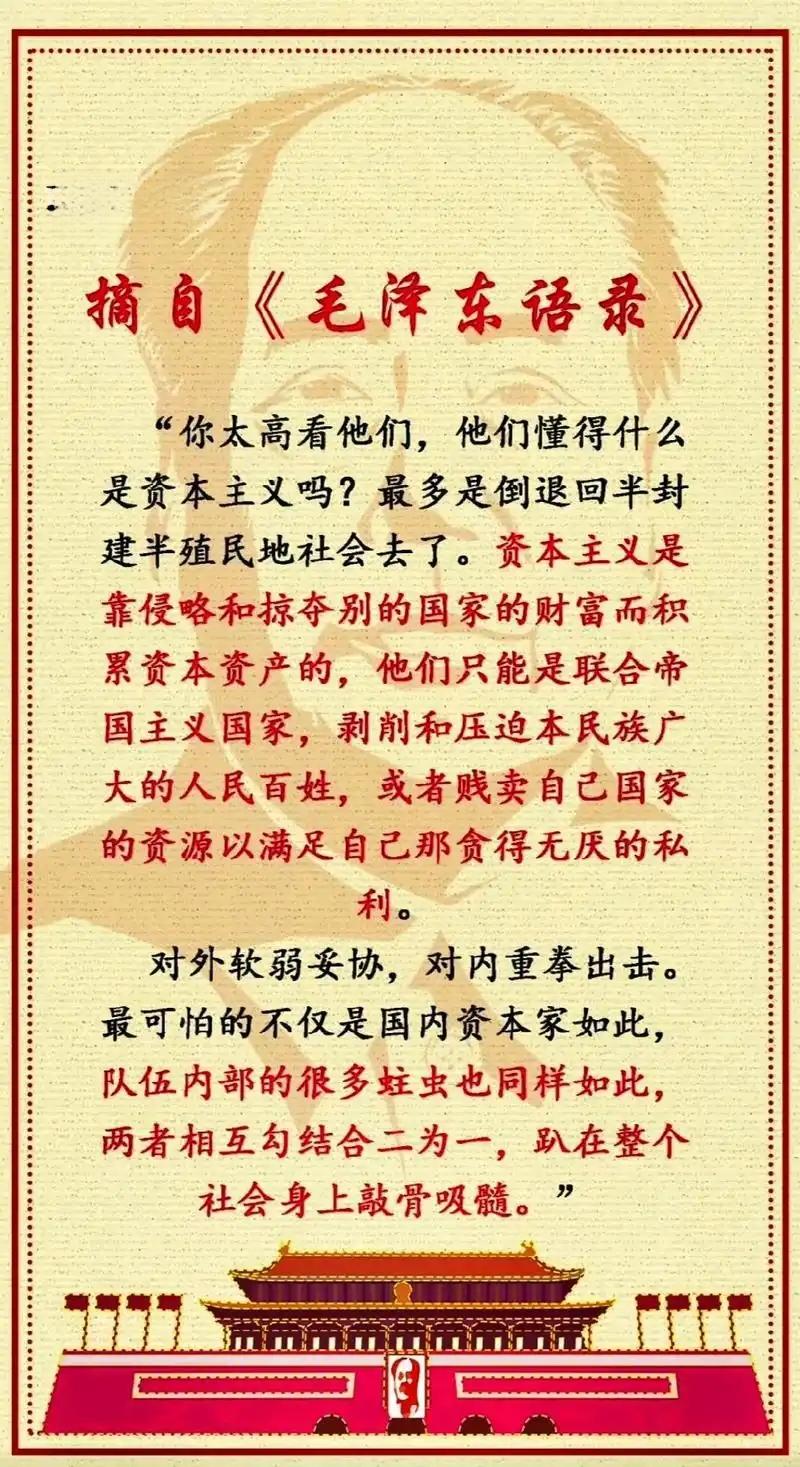 1972年,毛主席给世人说了这段通俗易懂的深刻警示(见图二),时至今日这段已经具象化了,国内外形势彰然若揭,十分清晰,这给我们治国理政方略如何制定明确了靶点,由此发力才能够使得我们国家治理体系和治理能力现代化不再是行于表面,而是精准发力,国际上要毅然决然反霸权,对美帝国主义集团对中国的一切霸凌行为坚决抵制,国内消灭新生资产阶级对广大人民百姓的剥削压迫思想及其行为,消灭干部队伍中的一切腐败思想及其行为,由此,我们必须毫不犹豫地解决一个燃眉之急,那就是重新打造干部队伍,把全党、全军、全国各族人民组织起来。