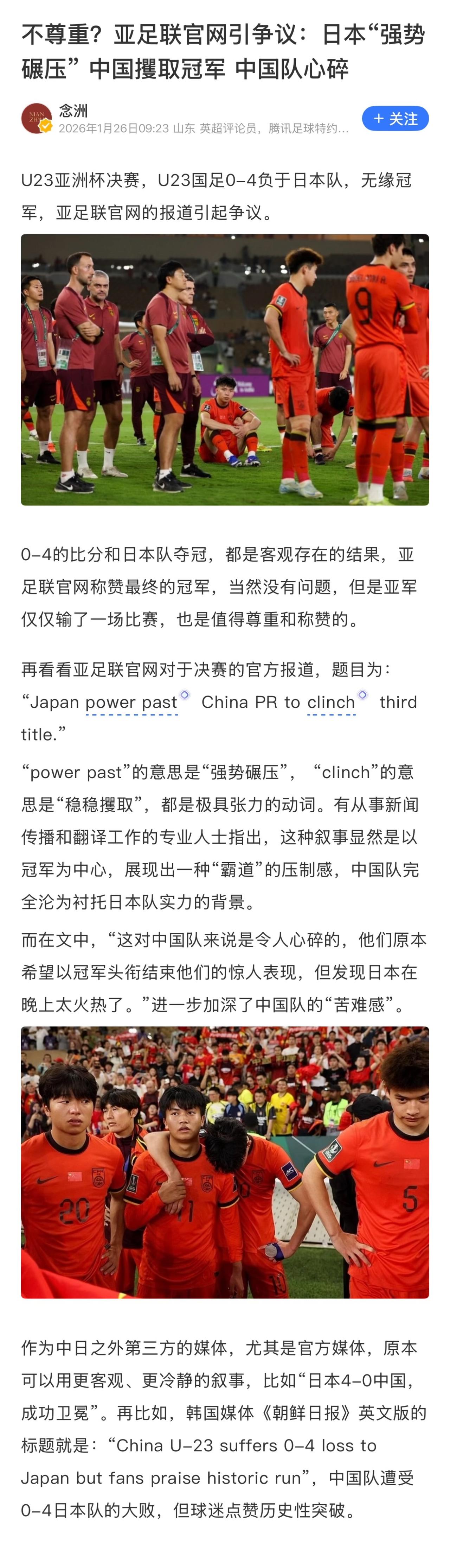 亚足联未能充分肯定首次闯入决赛并创造历史的中国队的努力与成就