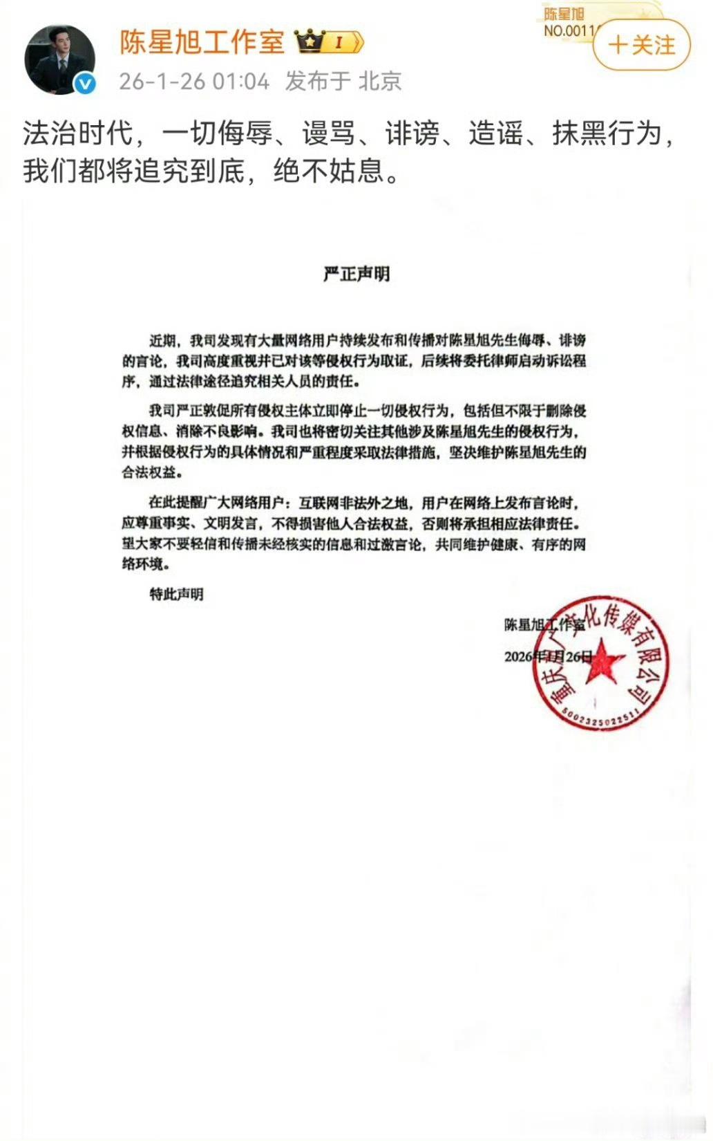 陈星旭工作室严正声明陈星旭告嘿,真是无妄之灾,支持维权
