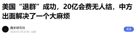 美国“退群”成功,20亿会费无人结,中方出面解决了一个麻烦   2026年1