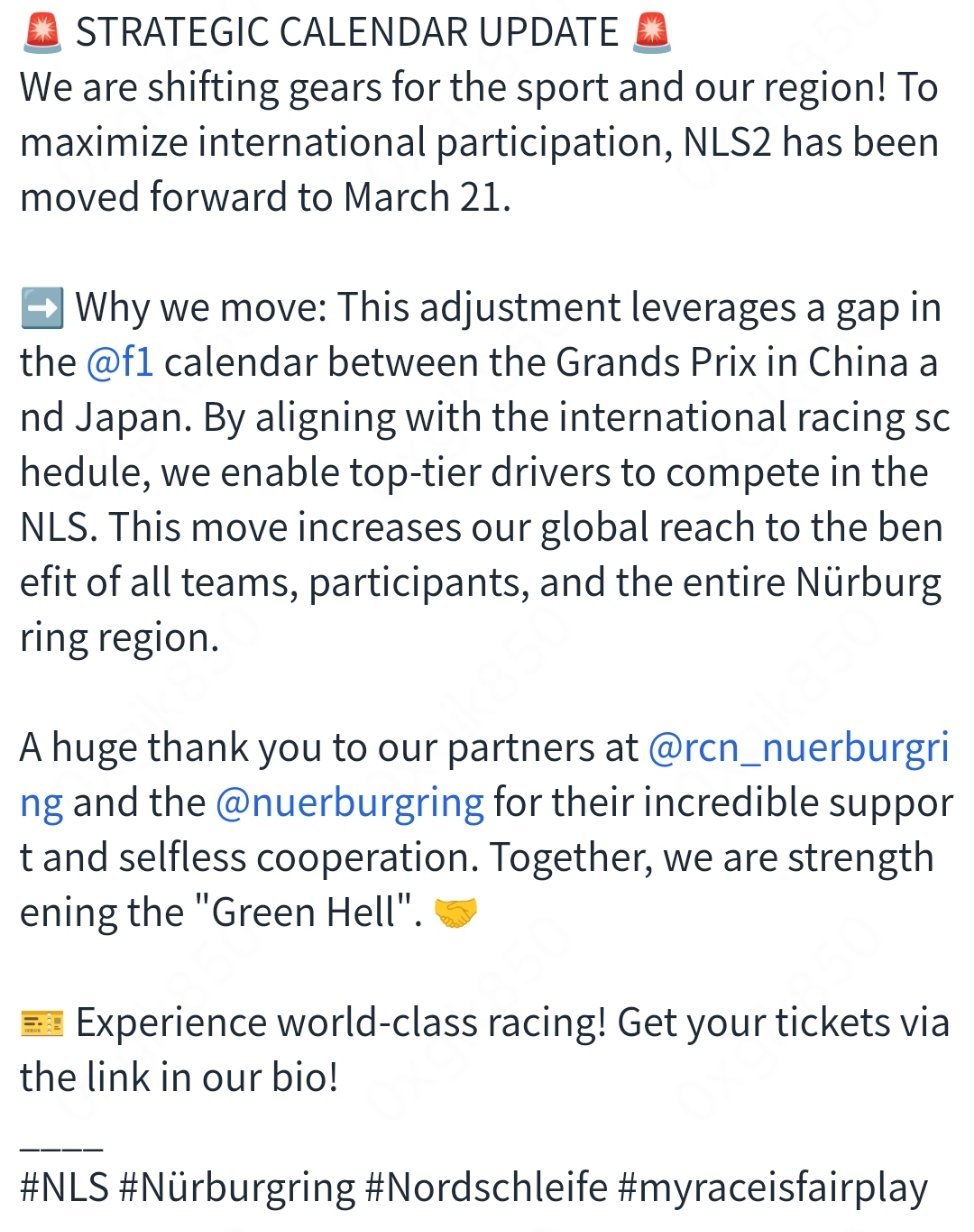 为了充分利用2026年F1中国🇨🇳大奖赛和F1日本🇯🇵大奖赛之间的空期,同时也好让维斯塔潘能顺利参赛,纽博格林耐力系列赛官方宣布,NLS系列赛的第二站比赛将从原定的3月28日提前至3月21日举行。F1赛车