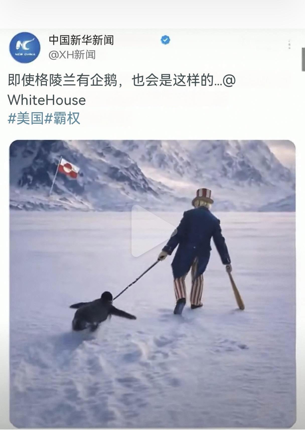 现在我们的官媒皮的很,这是新华社发在外网上的,还专门艾特了白宫。其实外网这个还比较温和,发在国内的那个短视频更精彩,山上下乡、锣鼓唢呐,啥子十八般武艺都用上了,搞笑的很。可惜老小孩看不到,大家应该想办法把国内版的推给他。