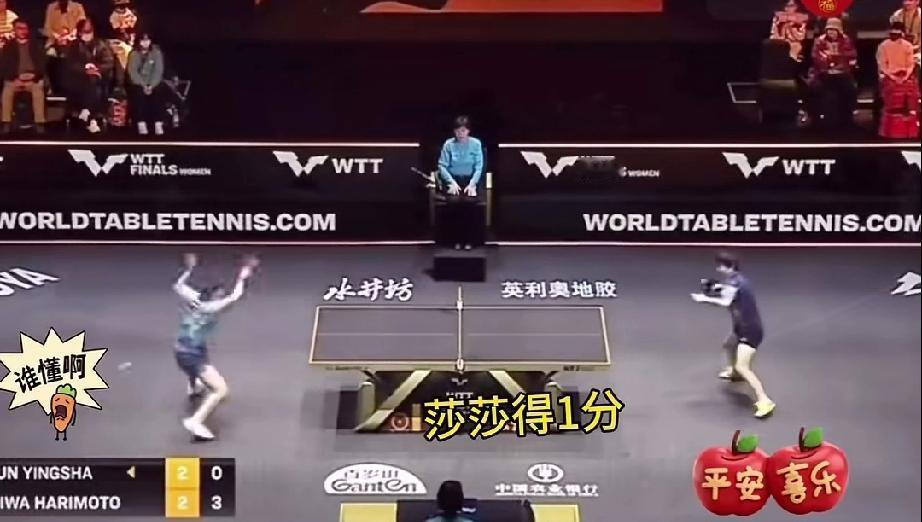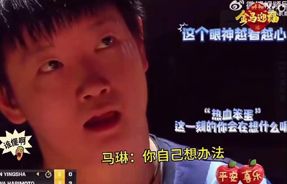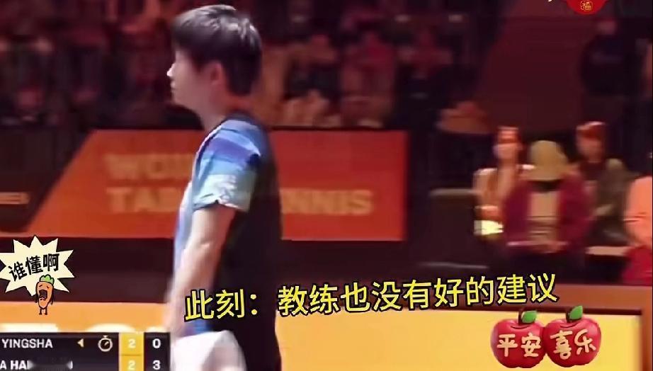 马琳:“你自己想想办法。” 莎莎歪头,抿嘴唇,这一刻感觉她红了眼眶。回到球台,莎莎就爆冲了张本美和。 张本美和,日乒崛起的新星,身高技术都很给力,真是有一股初生牛犊不怕虎的劲头。 张本美和,莎莎比赛,前面四局平手,打到第五局,张本美和先拿3分,莎莎暂停走到场外教练马琳旁边。 没想到, 马琳也很焦灼,找不出更好的办法,最后对着莎莎说:“你自己想想办法” 真的很好哭,这一刻莎莎要多难过,好在她扛过去了。后面得一分喊一声给自己提气。下面的拉拉队也很给力,德华还有一群自己的小伙伴,给予响亮的掌声。 在教练也没办法的情况下,莎莎的大心脏又一次表现到了最佳状态,点赞!