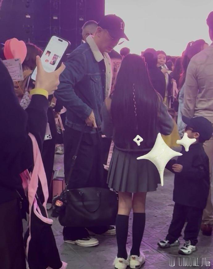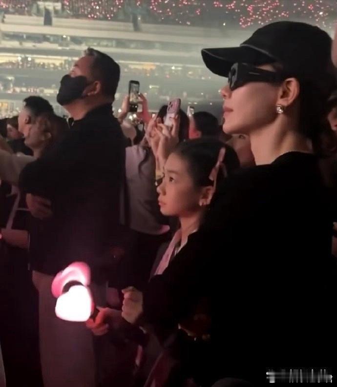 网友偶遇戚薇一家四口看BLACKPINK香港演唱会,11岁的Lucky一身女团风