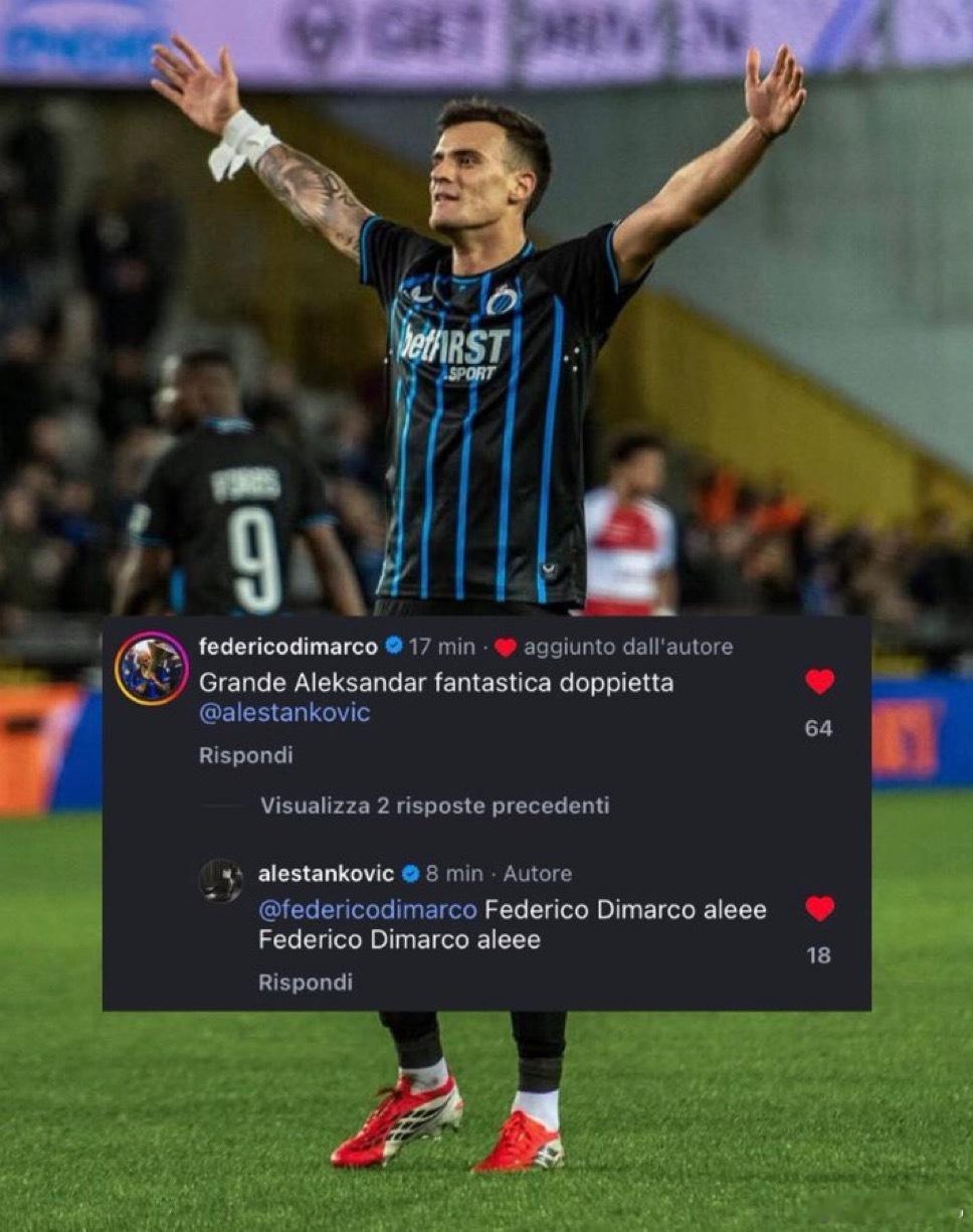 迪马尔科评论斯坦科维奇社交媒体:太棒了 精彩的梅开二度国际米兰6比2比萨热点现场 👏