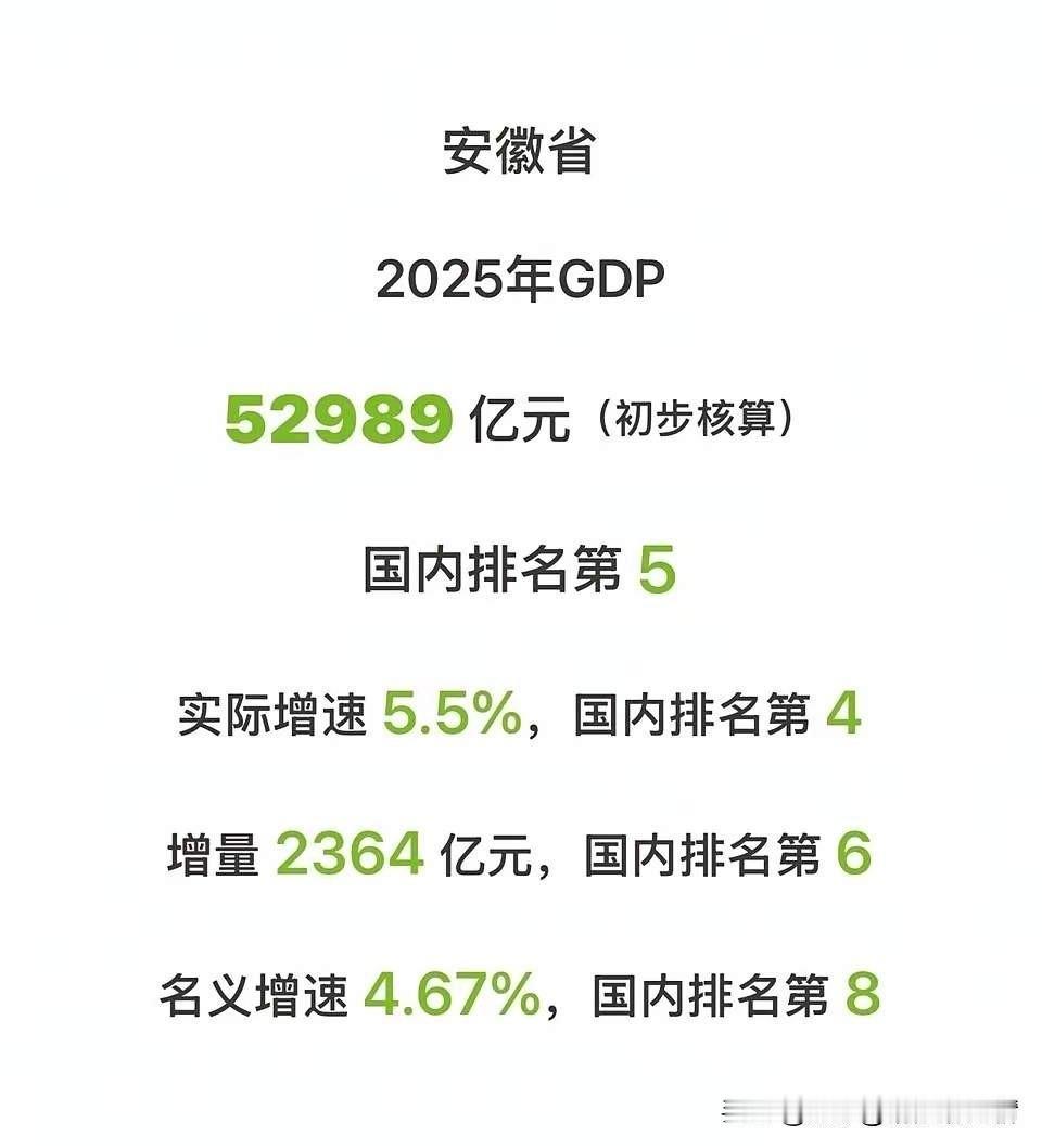 湖南2025年GDP公布,数据全面落后于安徽,前十位置不稳。 26日,湖南2025年GDP数据终于姗姗来迟。GDP总量55308.65亿元,排全国第十位,同比增长4.8%,低于全国平均水平0.2个百分点。GDP绝对增量2223.95亿元,名义增速4.19%。湖南这样的成绩单,相比于身后排第十一位的安徽,同比增速、绝对增量、名义增速均落后了,只有总量仍领先于后者。 总体来说,湖南2025年的发展稍显疲态。湖南为什么会这样呢?对比一下就知道了,安徽第二产业增长5.9%,湖南只有4.1%,很明显,湖南的工业转型升级滞后,拖累了整体经济增速。