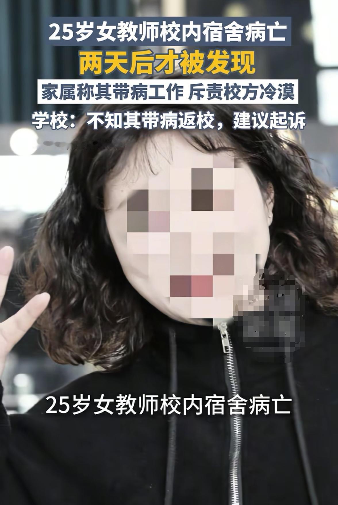 又发生一件真实事件, 值得所有人警惕!​ 安徽亳州一名25岁女子,在 合肥一所技工学校当老师。 ​​元旦前学校要排演出迎检, 她身体不舒服却硬扛着组织学生排练, 假期都没歇,专门外出就医调理。 1月6日回校后,她进教职工宿舍就再也没出来。迎检忙得热火朝天,可四天里学校竟没人发现她没上岗,无人过问。直到学生破门,才发现她已离世两天。 校方回应冰冷,称因病身亡与学校无关。 这事太让人痛心,也引人深思。 咱异地打工人,别总硬撑着工作, 健康才是本钱。 用人单位呢,人文关怀得落实, 员工安全管理不能少。 咱在外,也得和家人报平安。 大家说,学校这态度,到底有没有责任? 你们平时会和家人每天报平安不?