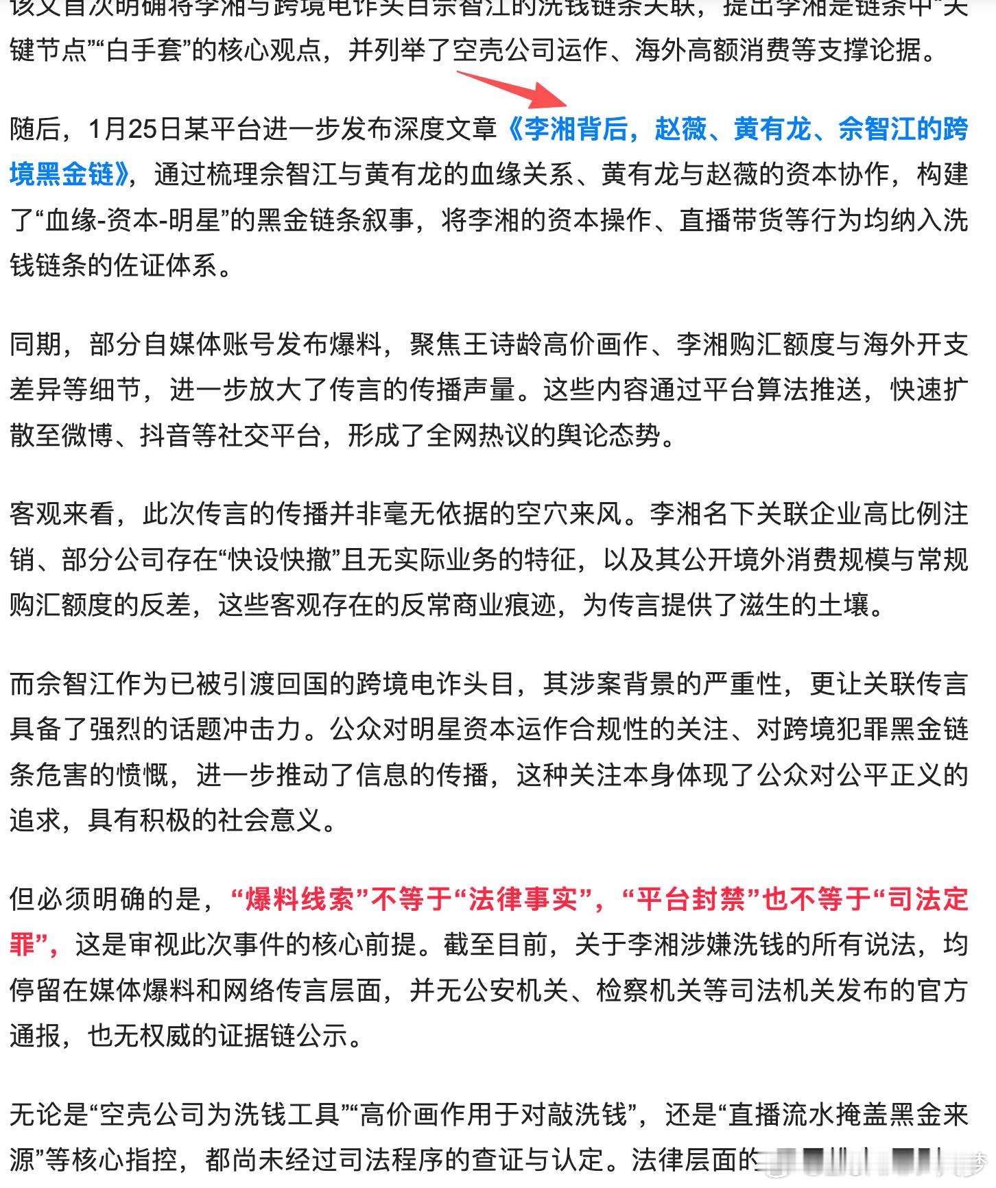 前一阵子,李湘几乎是被全平台封禁了,微博、抖音、小红书等等我当时还纳闷发生了啥,怎么一夜之间超重拳出击??当时心里有猜测可能是犯什么事了,但是还没彻底查明就没公布出来,只是优先做了封禁处理,直到今天不知道该不该吃,这瓜实在是太大了保险起见还是得等官方公告