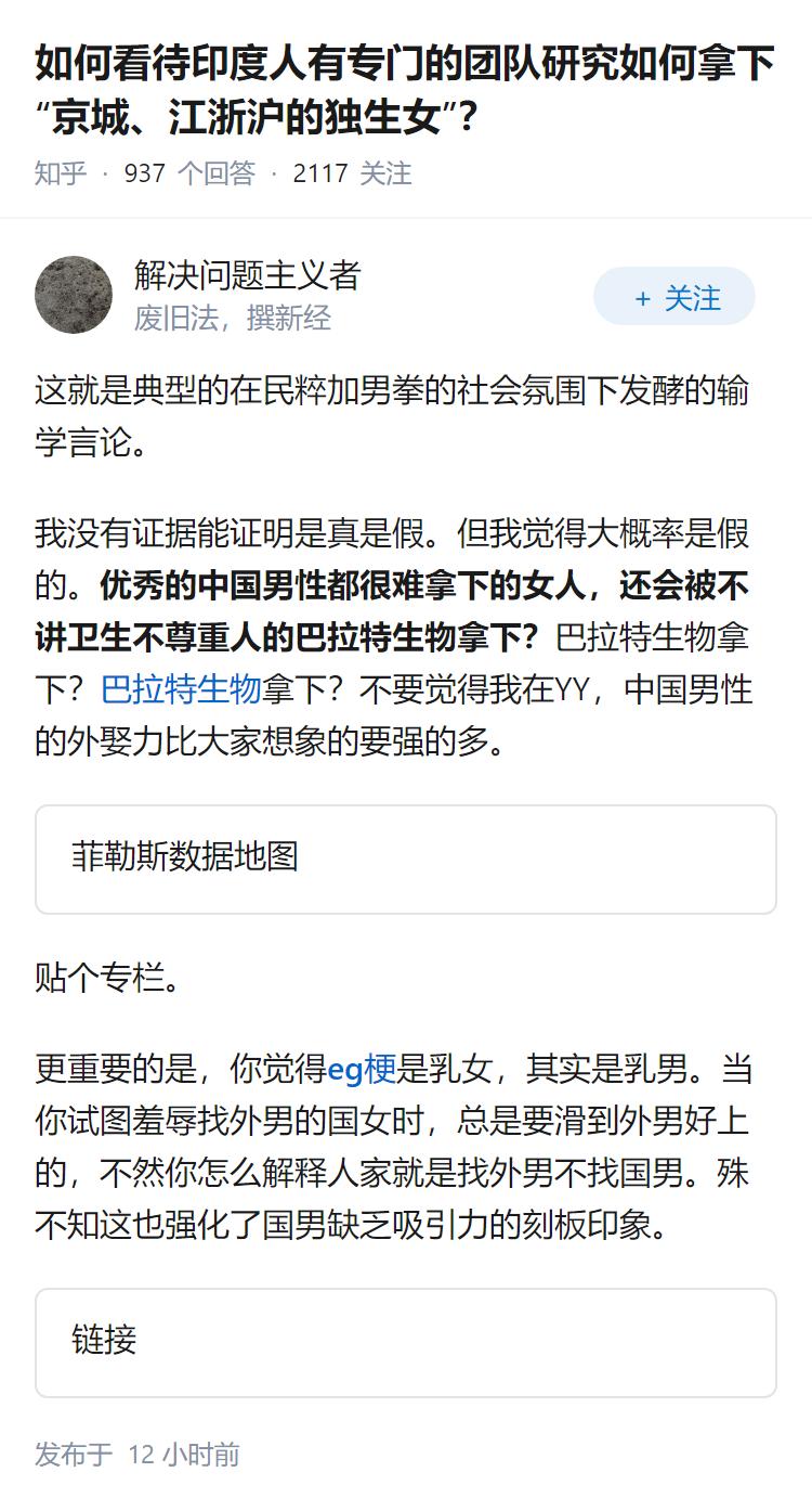 如何看待印度人有专门的团队研究如何拿下“京城、江浙沪的独生女”?