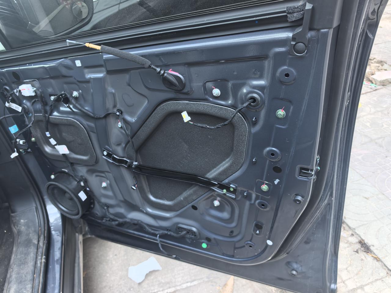 好家伙,比亚迪的用料也太厚道了。 所以我们开车的时候不小心撞瘪了,想把它顶出来,试了胶棒不管用,就想着把车门拆开,从里面往外顶,结果拆开才发现这里面也是一大片的钢板,根本无从下手啊。 我还以为跟我上一台车宝骏560一样,门板里面大片的空档还能有空间往外顶一下。 得,这下算是白拆了,费时费力不讨好。