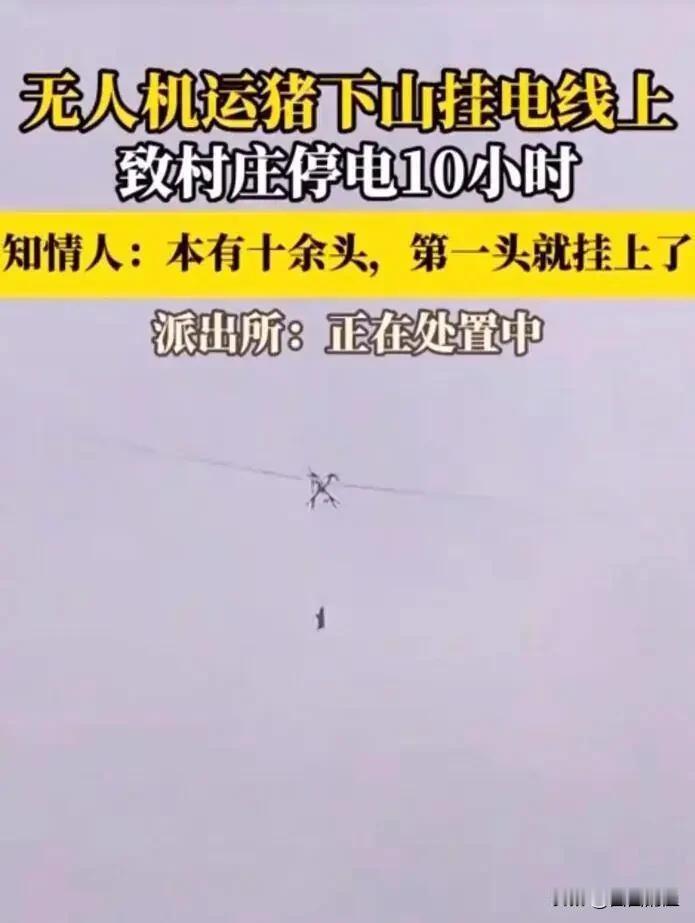 这年头,猪都能上天了!四川巴中一村民想用无人机把年猪吊下山,结果第一头就挂高压线上了,还导致全村停电10小时。现场那叫一个尴尬,猪在上面晃悠,人在下面干瞪眼。 网友们的脑洞也是大开:“猪:我求你给个痛快!”“二师兄,天上景色挺好的吧”“八戒,你的八十一难还差一难,这回算是给补上了。”“猪界也就我和天蓬上过天,够吹一辈子。” 本来想省力,结果赔了夫人又折兵,这波操作真是“猪”到家了。不过话说回来,这年头,连猪都知道要“飞”了,我们是不是也该加把劲?