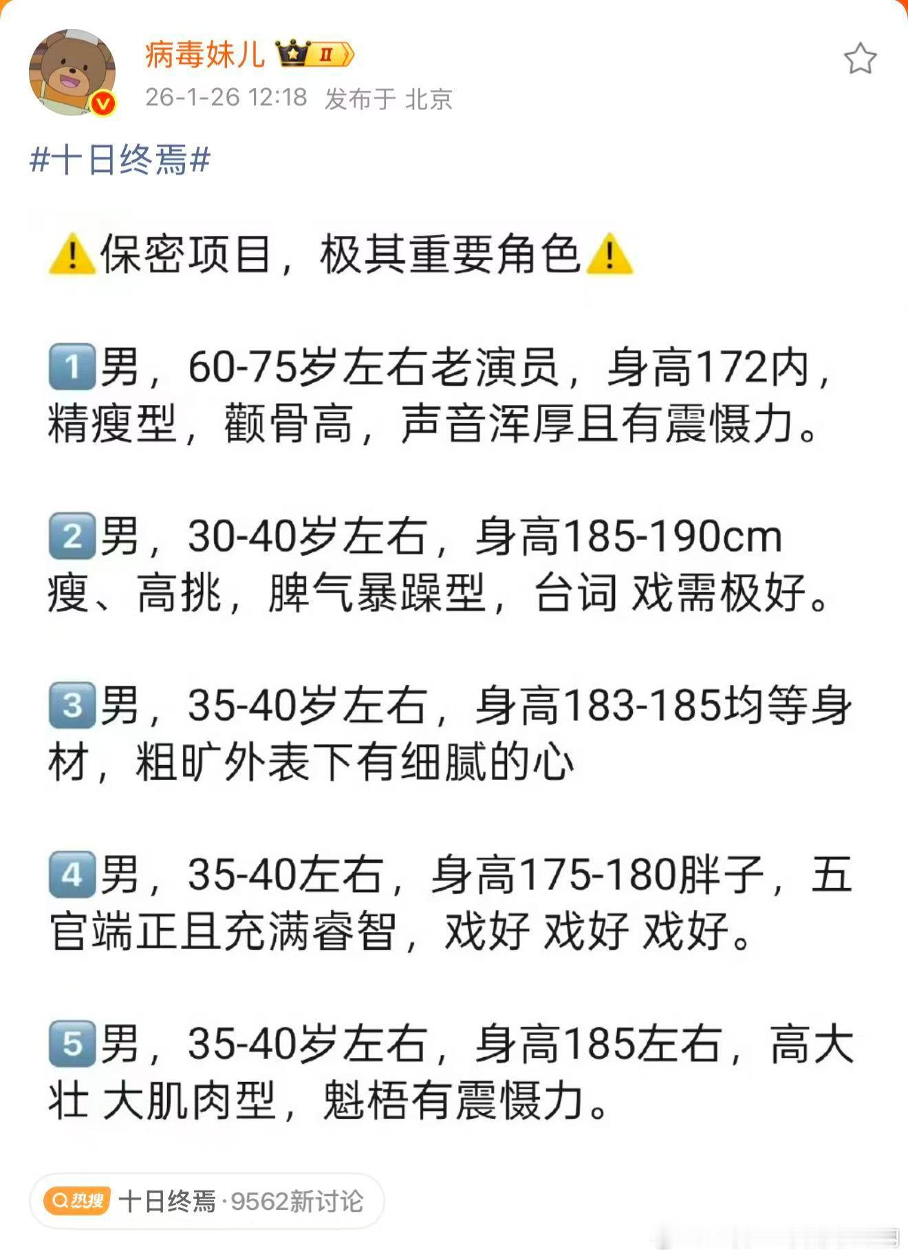 十日终焉选角,极其重要!身份特征好明显喔十日终焉配角竞争激烈