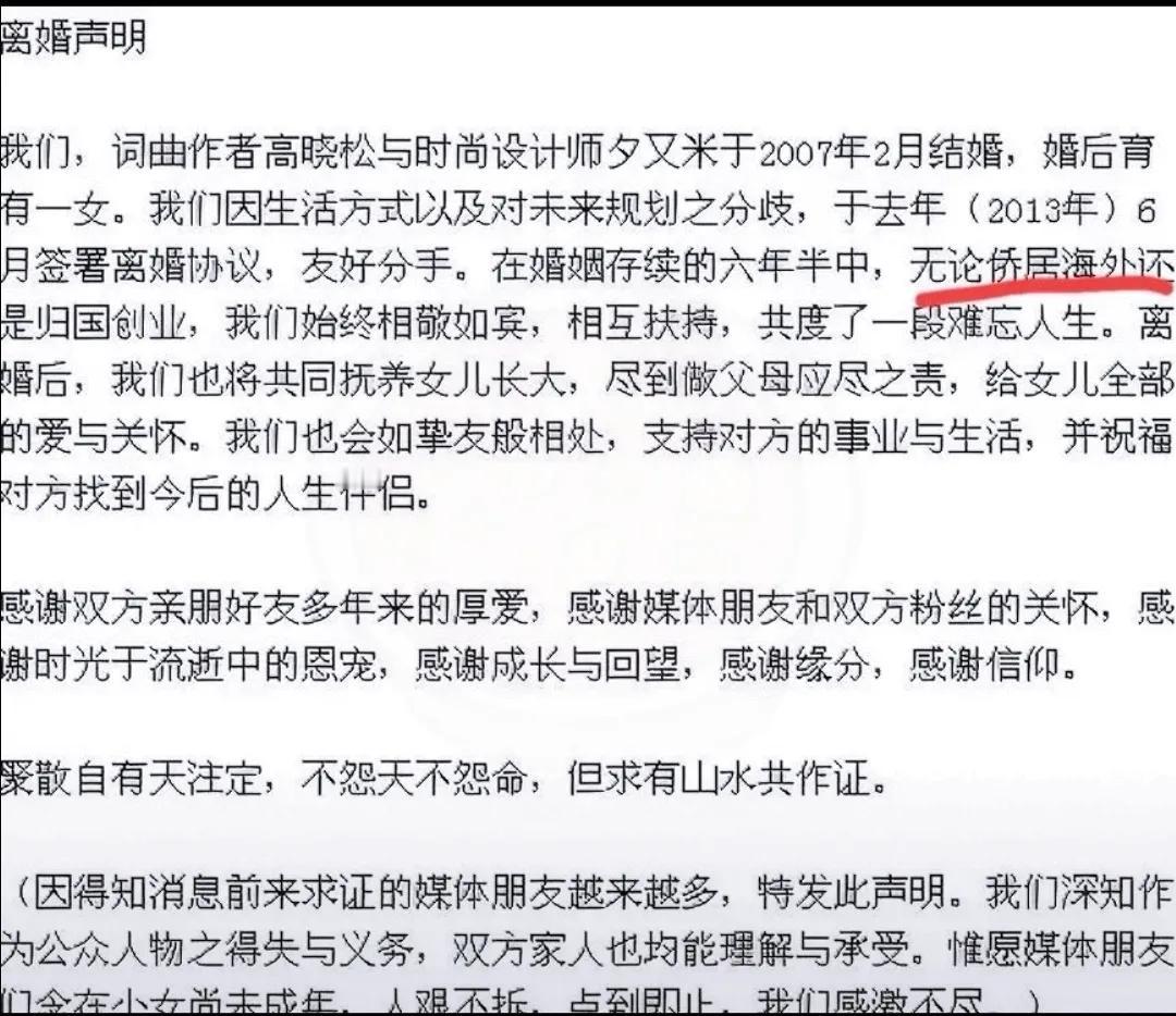  当年看高晓松离婚这事儿,觉得挺突然,现在想想,这哥们儿是真的精明。 把19岁的小娇妻送美国享福,自己在国内当牛做马赚经费。结果那次飞美国“探亲”,我看根本就是搞突击检查去了。 这一去估计心都凉了。自己在国内苦哈哈地挣钱,那边指不定早就换了天地。回来二话不说直接离,这哪是感情破裂啊,分明就是顶级投资人的“及时止损”。 那时候咱们还看不懂,以为是聚少离多。其实说白了,发现苗头不对,立马切断供养才是硬道理。 这就跟做生意一样,发现那是无底洞了还不跑?再拖下去,别说人留不住,连家底儿都得被掏空,到时候才是真的笑话。