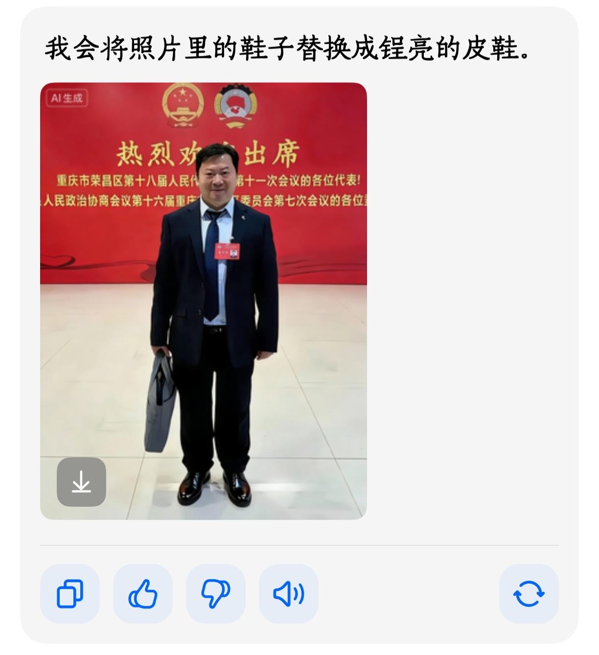 荣昌卤鹅哥有出席了, 只是他的鞋子跟整齐的西装有点不协调。连豆包都看不下去了。于是叫豆包给他重新整了一双亮亮的皮鞋。突然感觉和谐多了。[大笑][大笑][大笑]