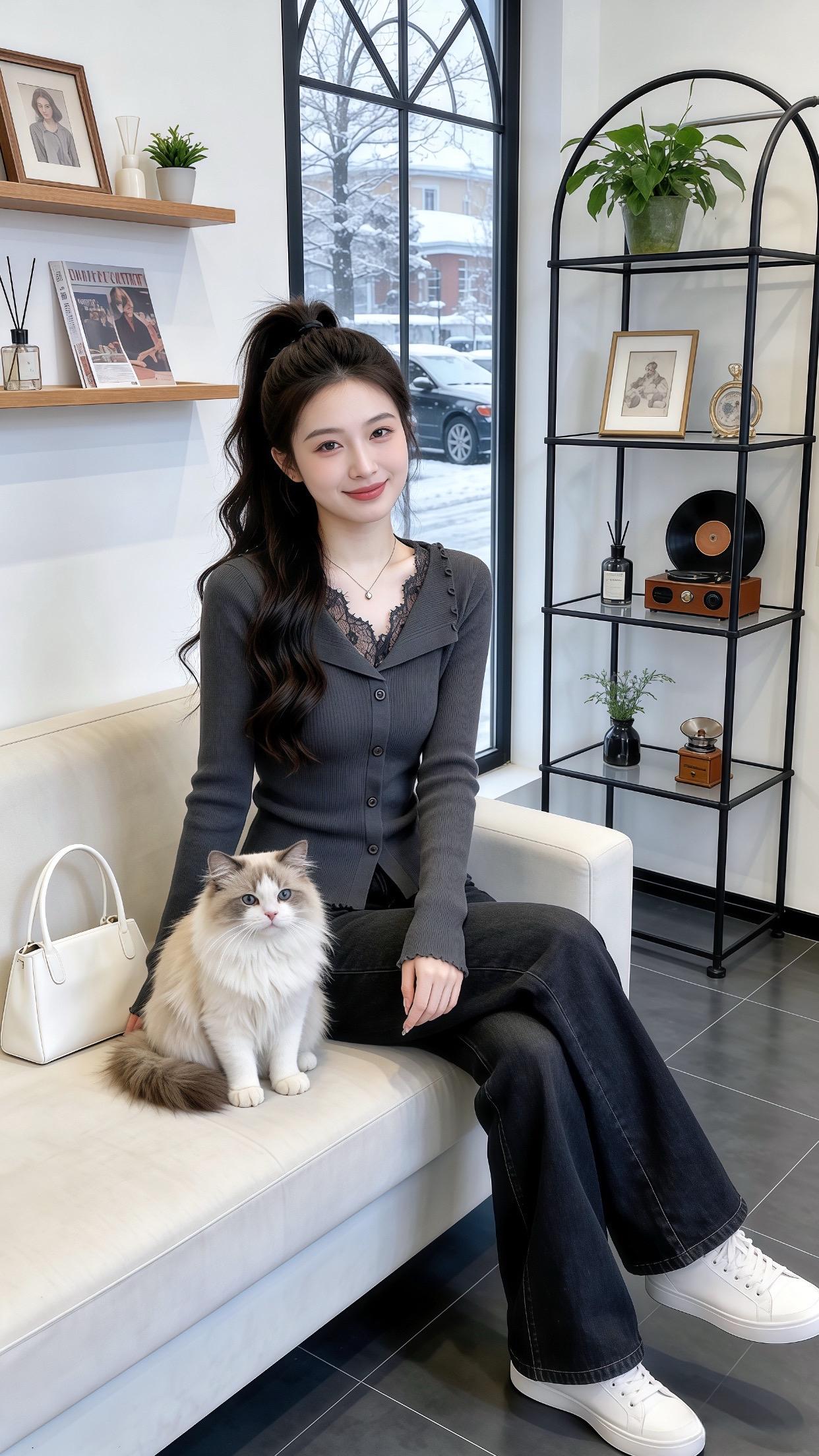 优雅白裙少女,静坐咖啡馆,时光静好