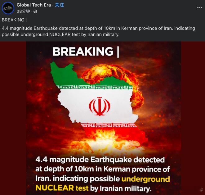 以色列暗示即将对伊朗发动军事打击 伊朗圣僧们现在疯狂的暗示他们有核武器,伊朗克尔曼(Kerman)省被探测到4.4级地震,深度10公里,克尔曼(Kerman)的地面军事基地曾在去年6月13日被以色列打击,那里是伊朗军事力量主要所在地之一。