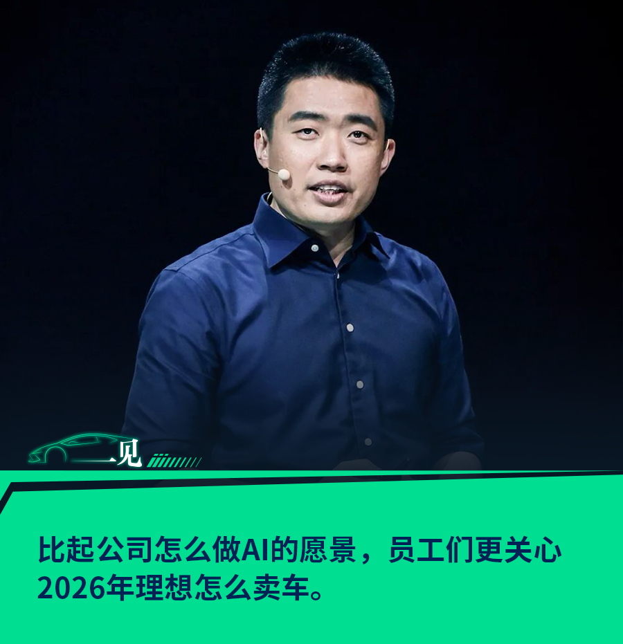 消息来自一见Auto理想汽车李想临时召开线上全员会,近两小时聚焦AI布局!明确2026年是AI头部公司上车最后一年、2028年L4落地,将发力基座模型、芯片等多业务,坚定推进人形机器人并尽快亮相,研发团队也将同步进行组织变革。不过目前员工情绪强烈,直言“听不懂”,更关心2026年卖车战略与公司复盘——毕竟2025年理想交付40.63万辆同比下滑19%,还遭遇多位核心高管离职大v聊车新能源汽车 杭州
