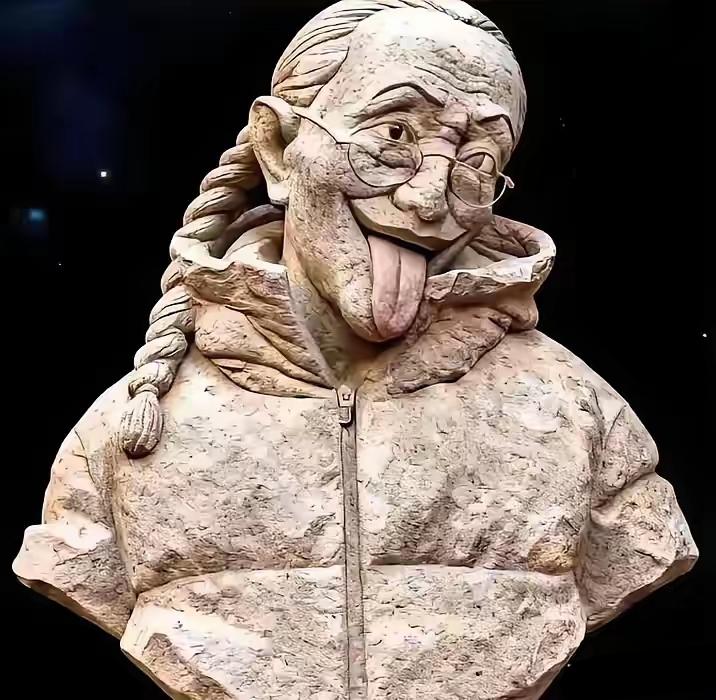 这个雕塑,还是活灵活现,神情兼备的,估计是AI生成的吧,看不出来是谁。但确实传神。