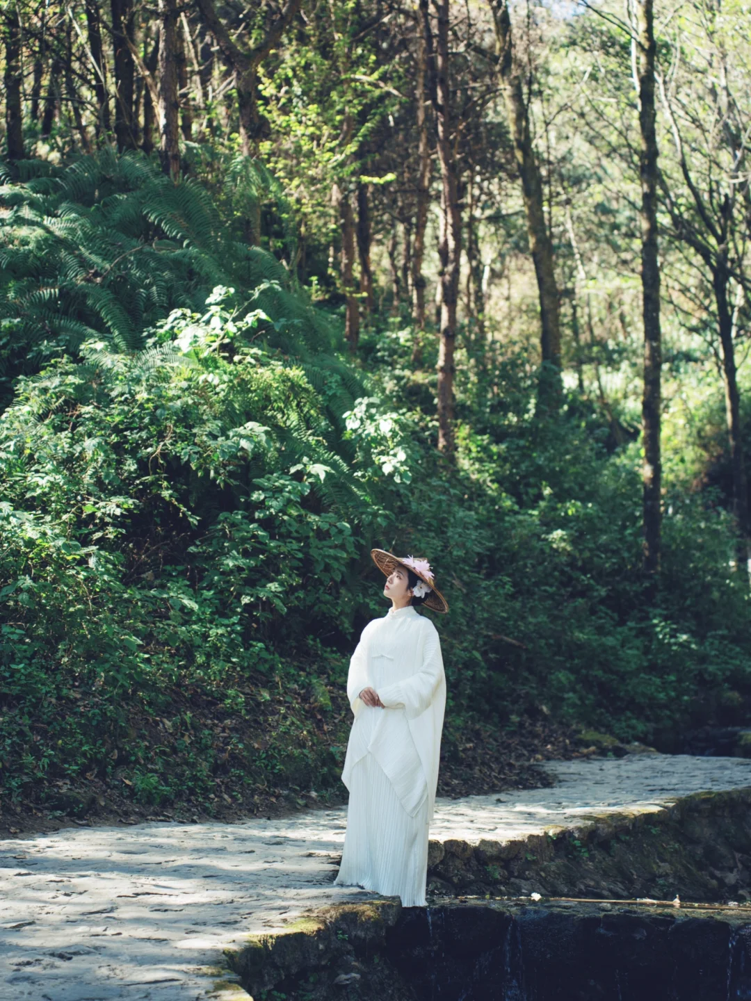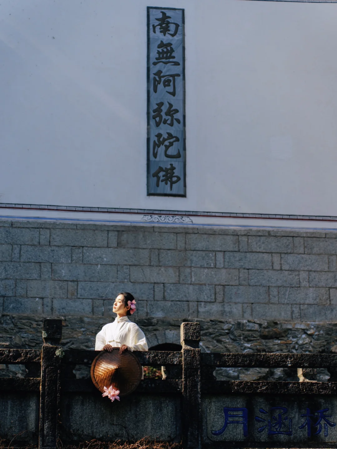 ①人坐月涵桥下的石头上,低机位仰拍