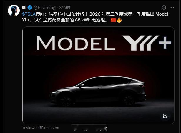 还有Model YL+,将配备全新的 88 kWh 电池组? 特斯拉model y
