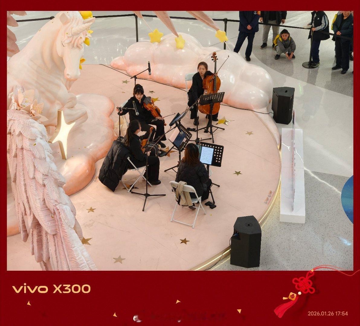 vivox300的新春水印也太喜庆了。正好碰到商场里举办的活动三个小提琴手和一个