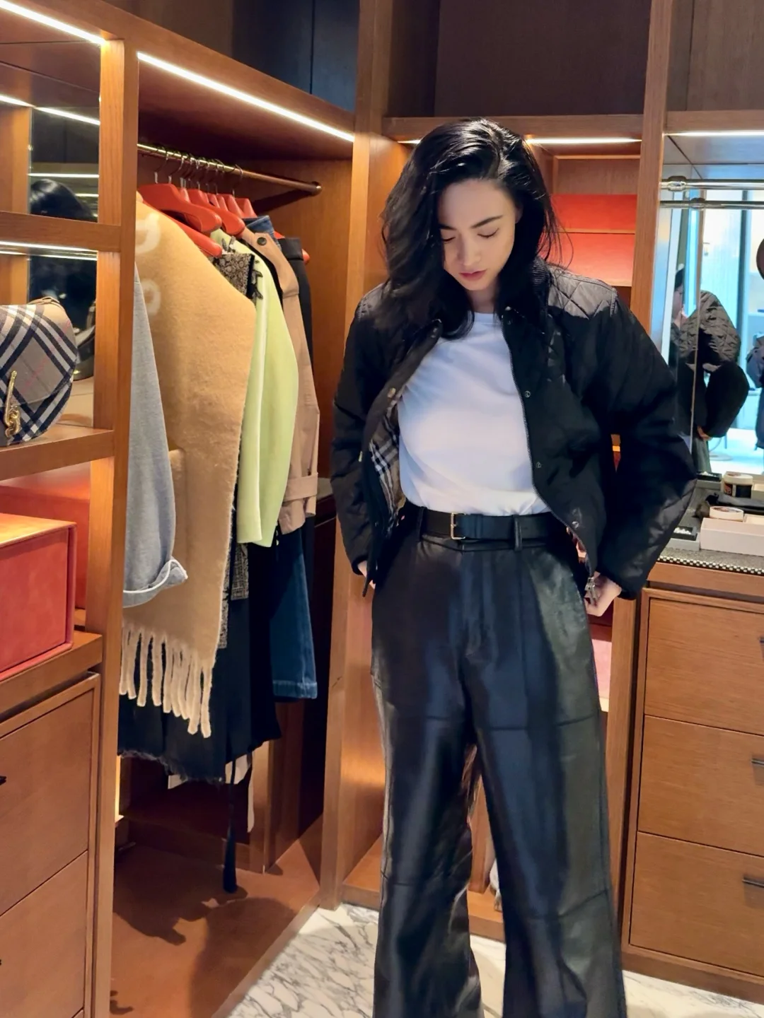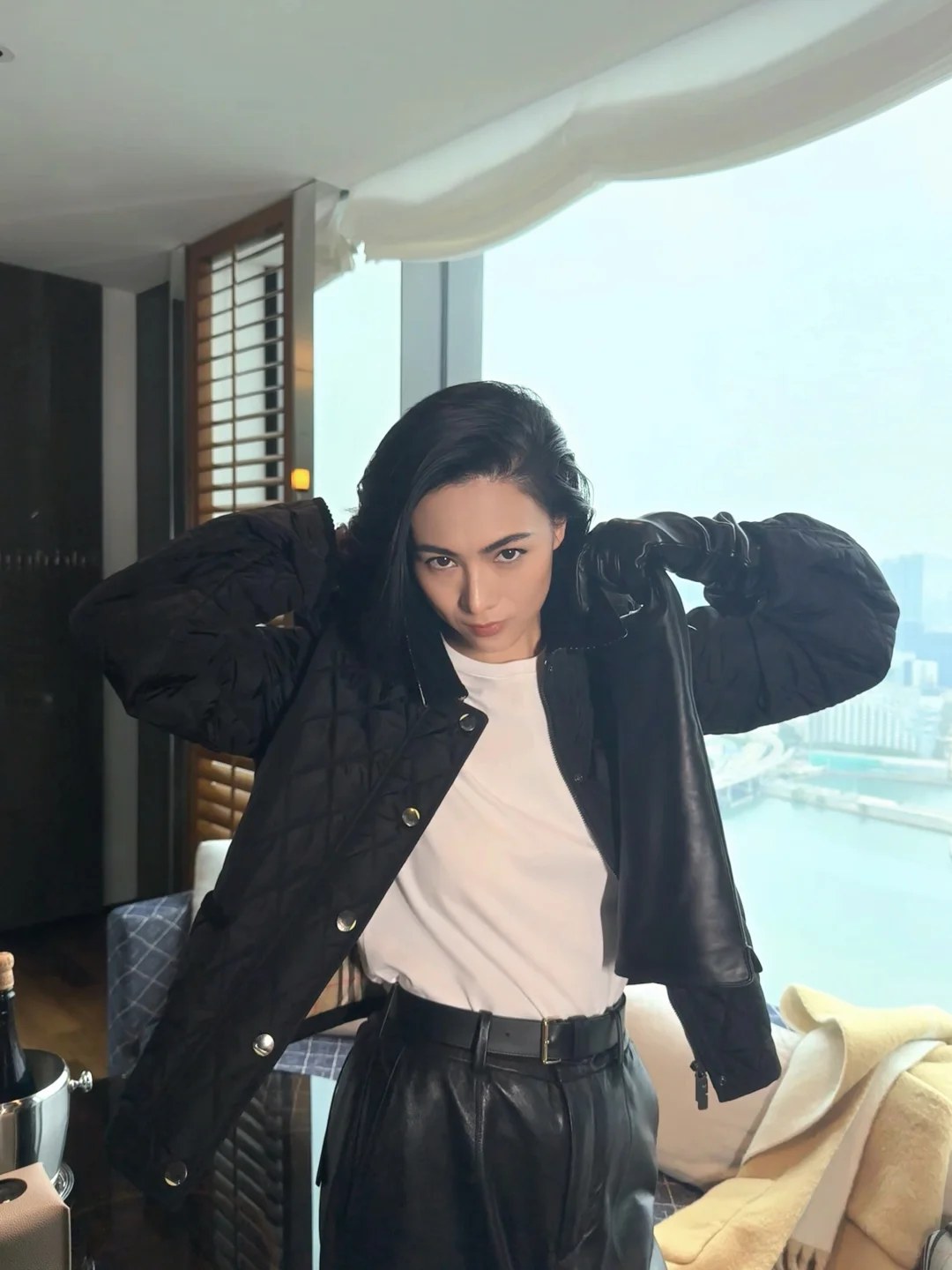 上周7号,皮衣、白裤和狗狗