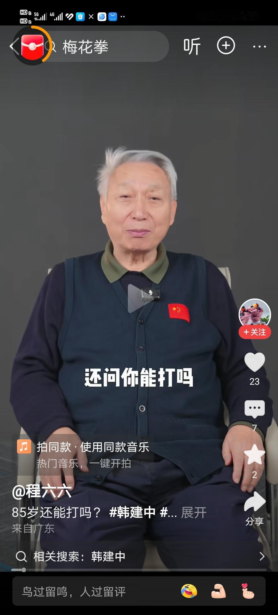 梅花拳传人韩建忠,致力于传统武术的推广与传承,他都85岁了,还有人问他能打吧?年轻的时候,应该是很能打,八十多了,估计同龄人也少有对手。 八十五岁的老人,精神矍铄。话语清晰,行动自由,能讲拳说招,让人佩服。 太极拳歌诀中有这样的一句话:详推用意终何在,延年益寿不老春。八十多岁的老拳师,能有这个状态,不正是延年益寿不老春吗?老架梅花拳 隐士梅花拳 梅花拳合影 威县李寨梅花拳 梅花拳功夫小院 深州梅花拳 深州梅花拳 雷家梅花拳 梅花拳武校 马庄梅花拳 梅花桩功夫 梅花五式拳