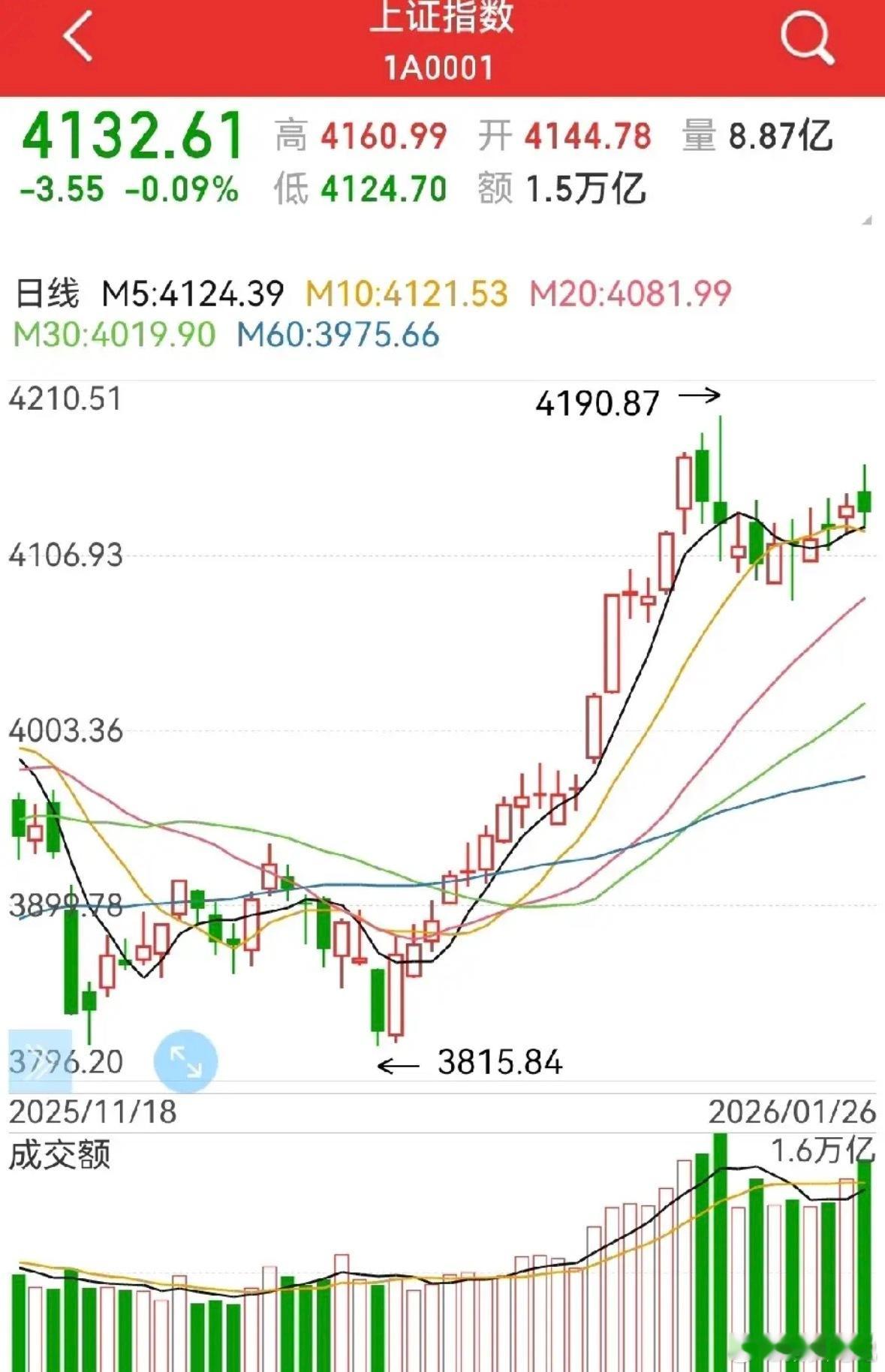 大盘要变盘了?周一看着走得稳,但量能一直在放大。贵金属因为金银价格飙涨直接掀涨停潮,而前期四大热门题材却深调,本以为要收阴,就这成交量太反常。指数不可能一直横盘,方向很快就会出来。四大题材要么是最后一洗、马上反攻,要么短期就走弱,个人更偏乐观。毕竟成指盘中已经创了新高,中期趋势还在。