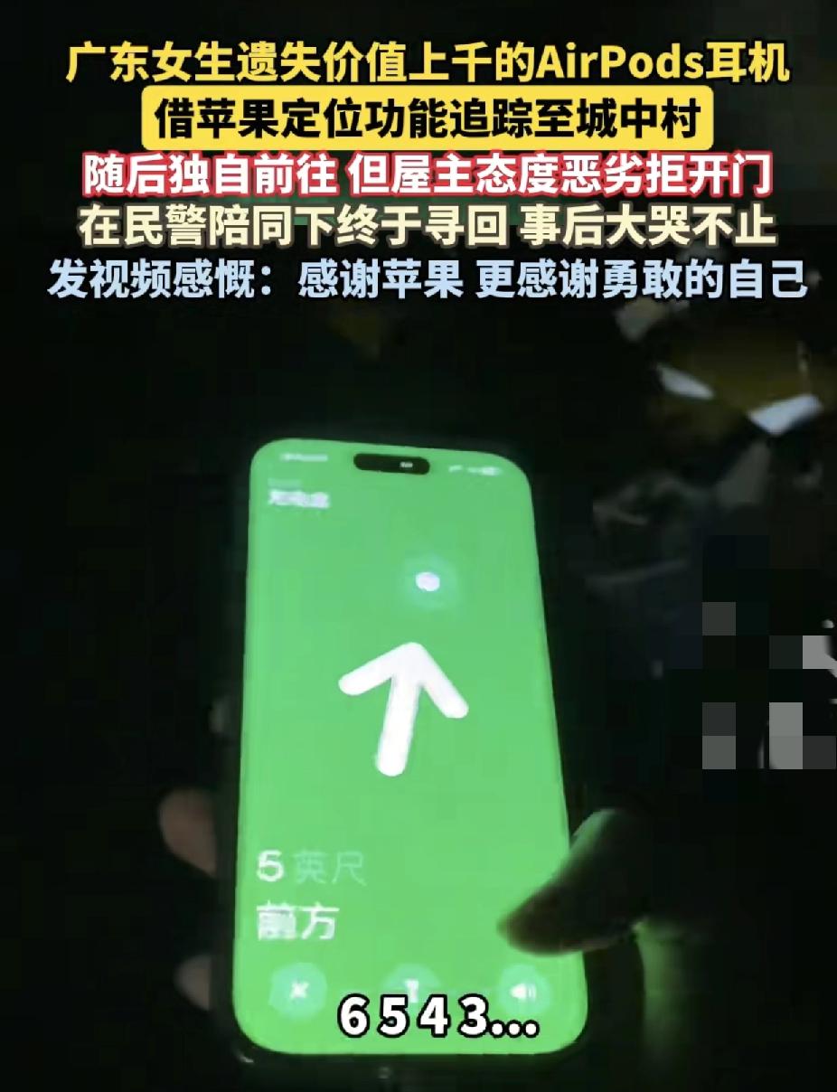 广州一女生丢失了3000元的airpod耳机。通过苹果手机的定位功能寻找到耳机是在城中村内,主动上门寻找时。对方态度非常恶劣,自己只好求助于民警,民警上门之后,对方才归还耳机,女子后。面大哭不已他感谢苹果的定位功能,把自己丢失的东西找回来,也非常感谢自己,这么勇敢执着,不然上千元的物品就这样没了。