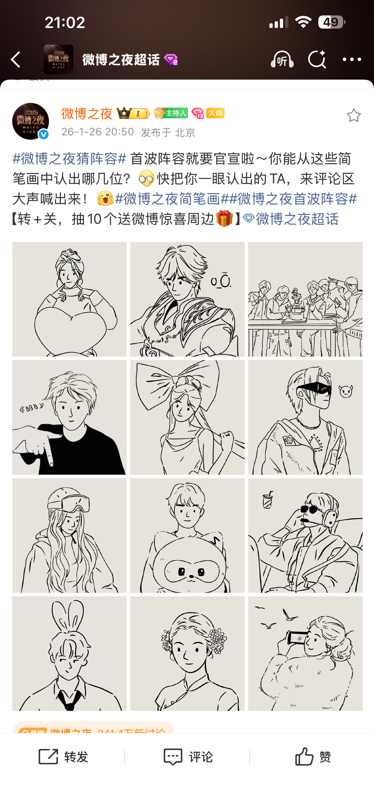 微博之夜简笔画已知穆祉丞、袁一琦,章昊,刘些宁,黄朔,张康乐,刘宇,小鬼王琳凯… 微博之夜首波阵容