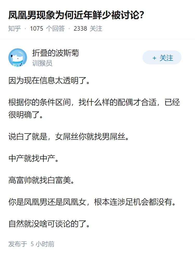 凤凰男现象为何近年鲜少被讨论? 早些年很多人都在讨论嫁人是否嫁凤凰男,跟城市的男