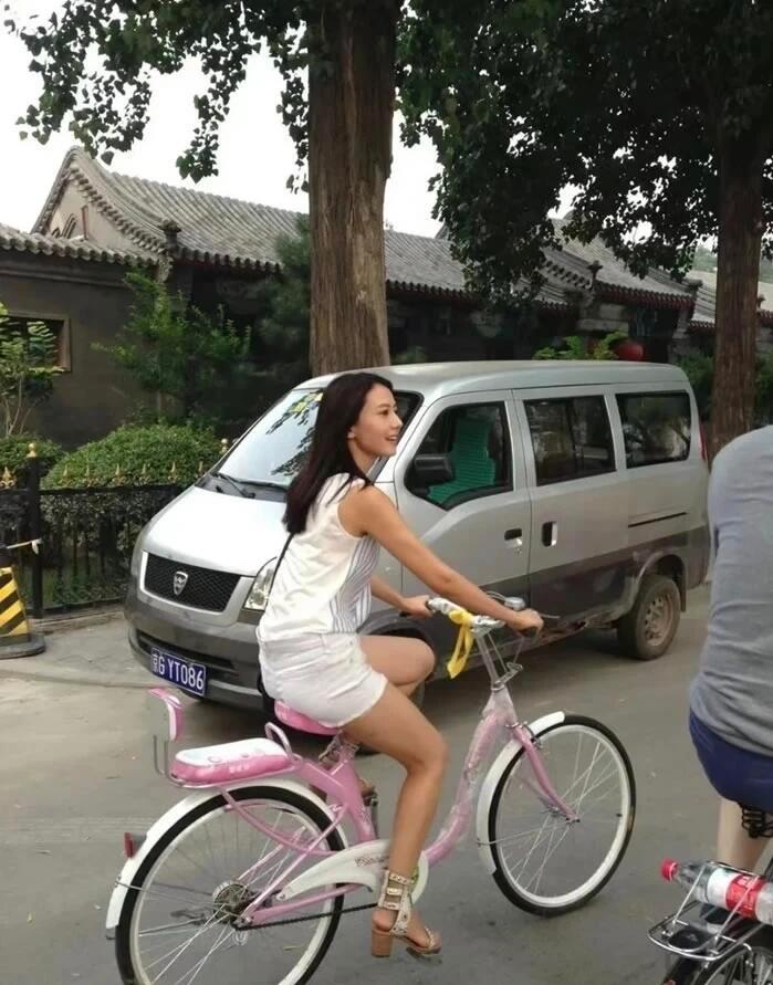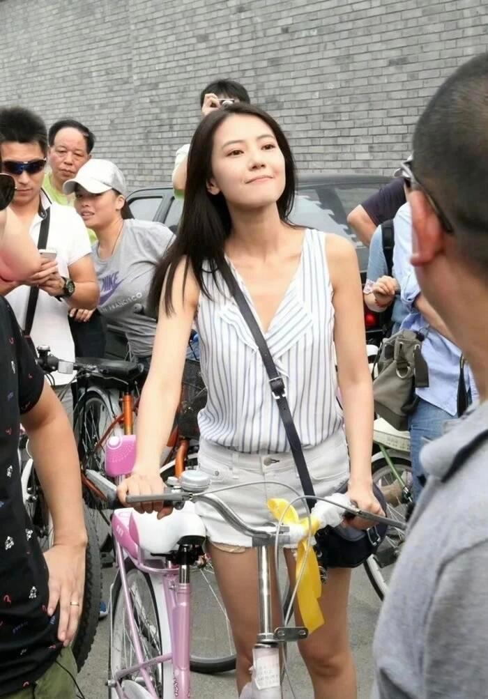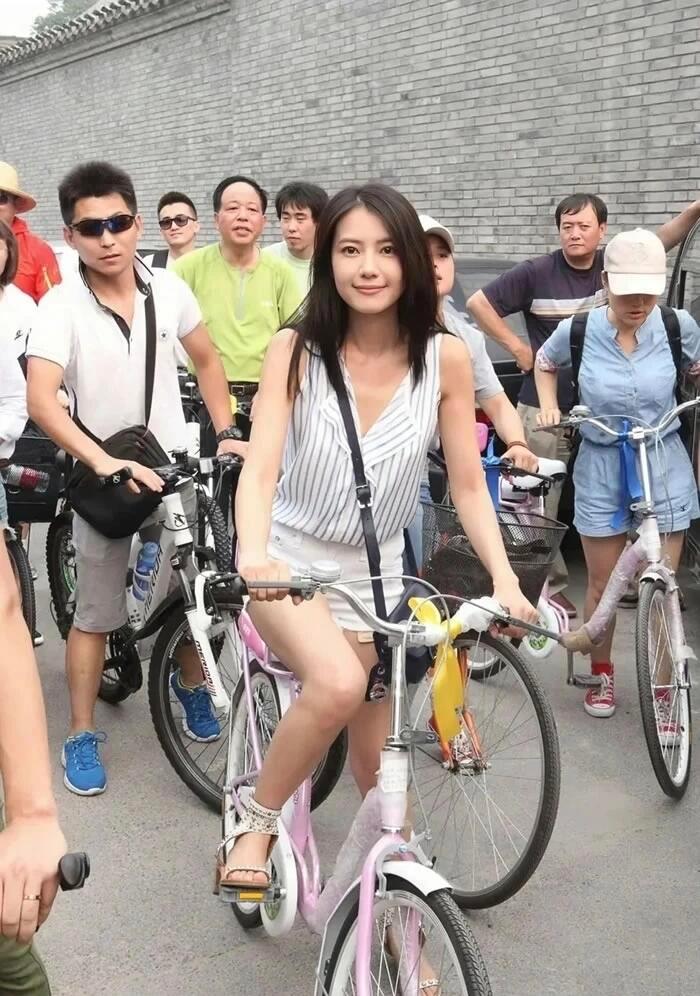 2013年34岁的高圆圆骑着单车逛北京胡同