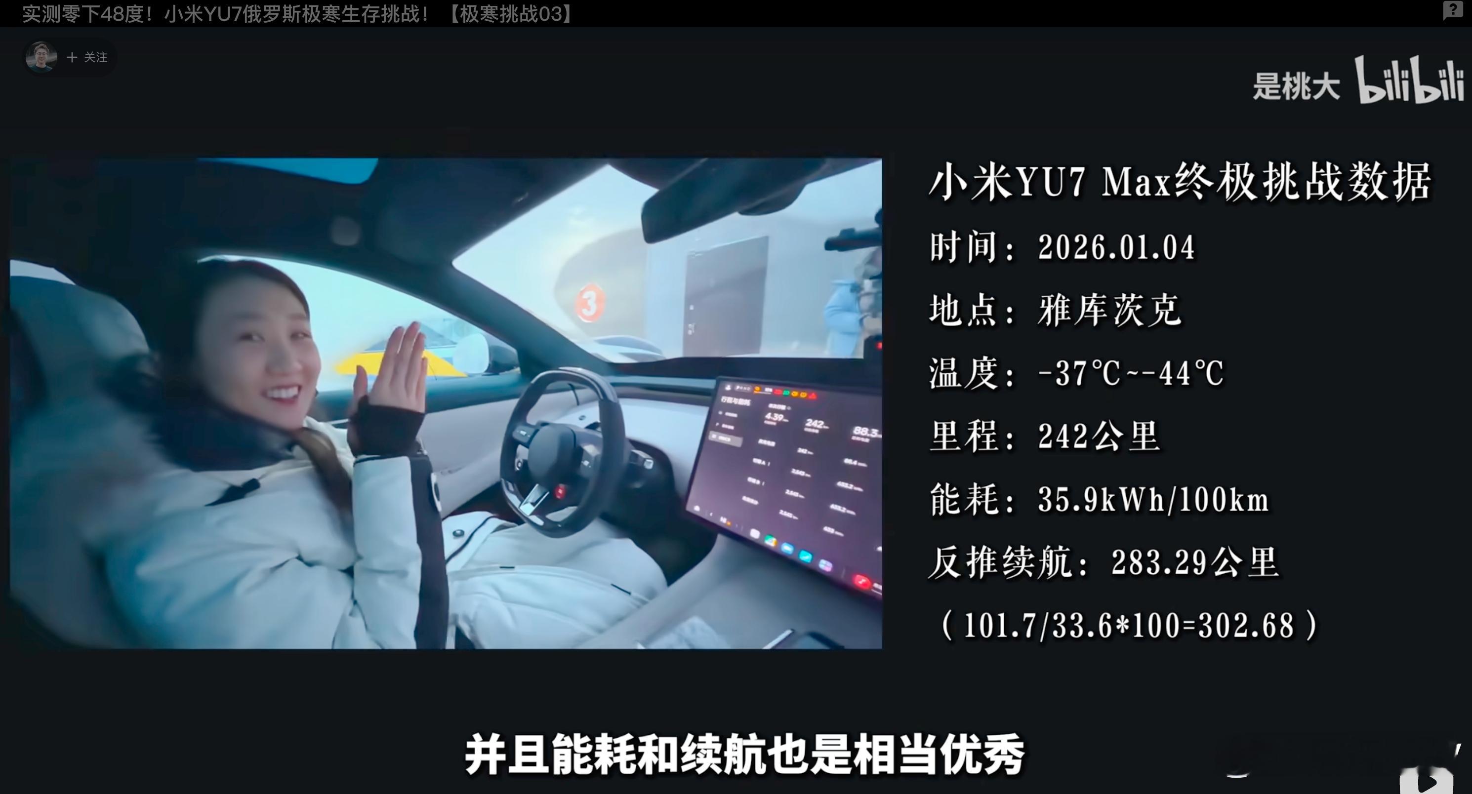 太强了!B站UP主驾驶小米YU7在世界最冷的城市雅库茨克进行生存挑战并获得成功,要知道在这种零下40多度的低温环境还有非铺装路面,雪雾能见度非常低的场景下,小米YU7也能够挑战成功并轻松通过,不得不说,小米汽车的技术含金量真高啊。我认为小米YU7能够在零下40度的科雷马“白骨公路”,突破纯电车低温极限,挑战成功,展现了小米汽车在极寒下的卓越操稳,相信未来北方地区会有更多人选择电车,电车也会像油车一样正常行驶在北方的大街小巷。