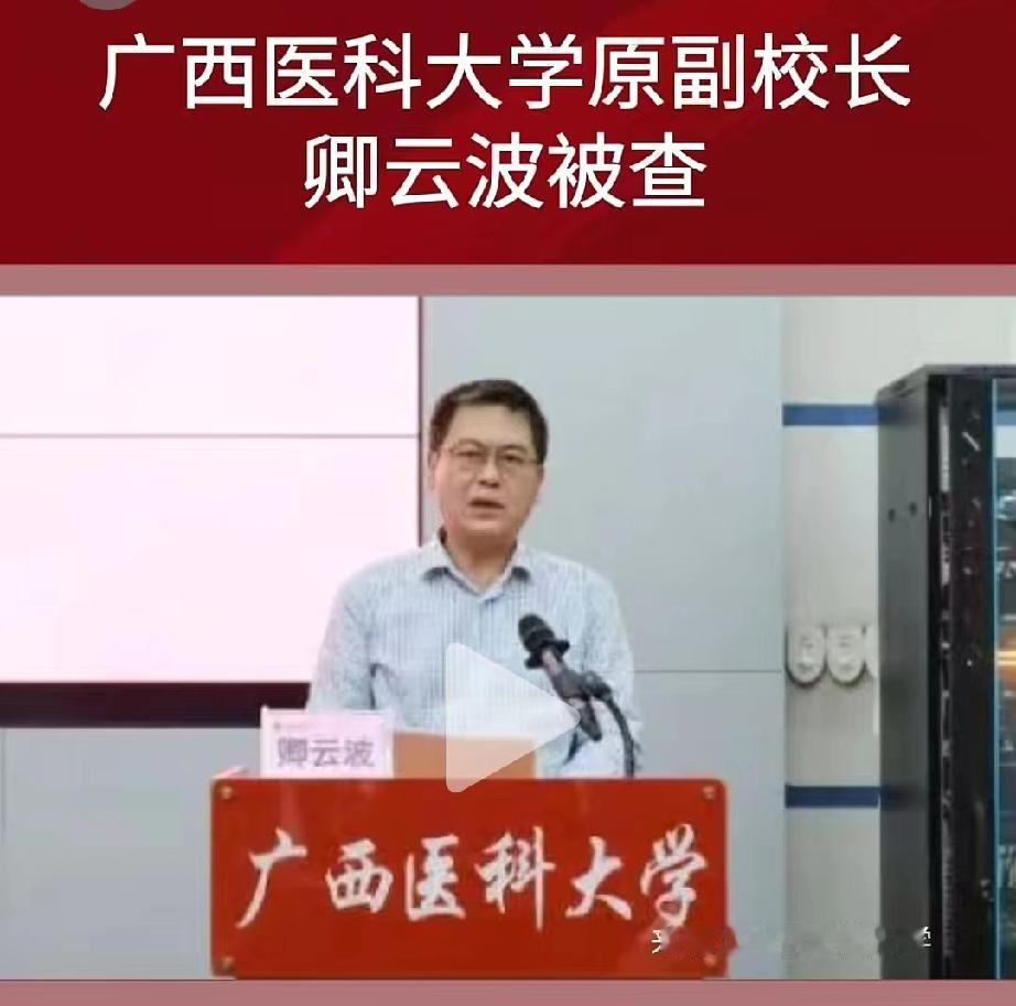 2017年11月,51岁的卿云波,身穿一身蓝色西装,带着绿色花纹领带,内搭白色衬衫,看起来也是西装革履,一表人才,矗立在话筒面前,侃侃而谈,意气风发,这时也是他的高光时刻,这一年,他被广西壮族自治区人民政府聘任为广西医科大学副校长,聘期三年(2017年11月至2020年11月),第1年为试用期,一切仿佛都是春风得意,2021年3月29日,三年的聘期已满,他又被再次任命担任广西医科大学副校长。 这里的广西医科大学是一所位于广西壮族自治区首府南宁市的省共建医科大学,创建于1934年,是全国建校较早的22所本科医学院校之一,学校主要以医学为主,涵盖理学、工学、文学、管理学、法学、教育学等七大学科门类,拥有完整的学士、硕士、博士、博士后教育培养体系。 从这里可以看出这所学校的规模不小,学校共有教职工14,096人(包含五所直属附属医院),其中专任教师2403人包括博士1569人,正高职称1064人。副高职称2034人。该学校共有南宁校本部,南宁武鸣校区,玉林校区和在建的南宁五象校区4个校区。 卿云波的履历也不简单,他1966年10月出生于广西灌阳,拥有在职研究生学历,管理学硕士。 曾经还担任过广西医科大学校长助理,盘龙住宅区建设办公室主任(兼)、国际医药教育中心(五象校区)建设办公室主任,玉林校区筹办办公室主任(兼)。 于2017年11月正式晋升广西医科大学副校长。 主要负责学校的信息管理,以及武鸣校区,玉林校区,附设玉林卫生学校管理工作,协助分管信息中心,武鸣校区管理办公室玉林校区等等。 他作为一名省属高校的副校长,本应该在履职期间恪尽职守,兢兢业业,廉洁从政,然而他却被内心的贪欲蒙蔽,慢慢的伸出了贪腐之手,最终倒在了59岁的年纪,跌倒在了退休之前,真的是令人唏嘘。