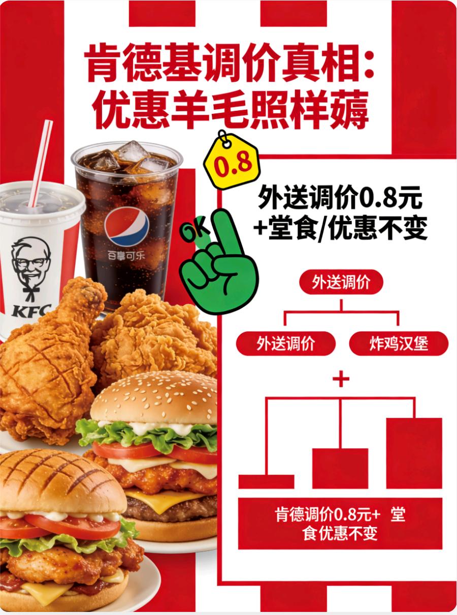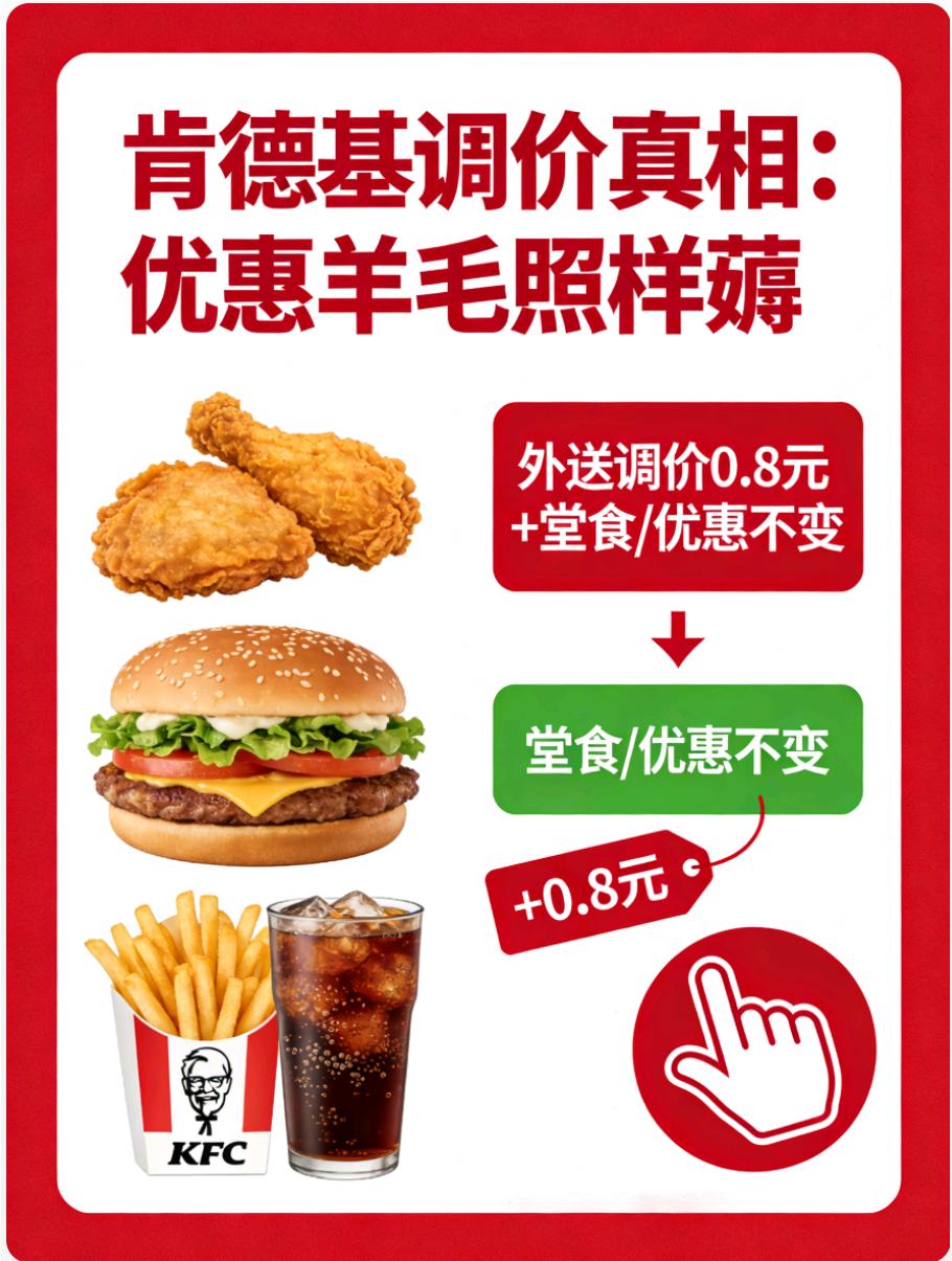 肯德基回应涨价!这些关键信息快码住✅ 肯德基外送产品调价上热搜啦🤔 官方回应来了,划重点别跑偏! 1月26日起部分外送产品小幅调价,平均涨0.8元,堂食价格纹丝不动👍 这次调价是应对人力、物流等运营成本上涨,属于行业正常操作~ 宝子们最关心的点来啦!疯狂星期四、周末疯狂拼、OK餐三件套这些王炸优惠,价格全都没变化😎 该薅的羊毛照样薅,快乐一点没减! 之前外送费早就从9元降到6元,这次微调也是为了平衡成本、稳住服务品质,核心产品依旧性价比在线✨ 肯德基深耕近40年,门店超1.2万家,一直都在优化成本结构,力求兼顾品质和实惠💯 想省钱也能选堂食,优惠套餐不涨价,怎么吃都划算~ 理性看待调价,该炫的炸鸡汉堡还能炫,疯四快乐永不打烊🥳 肯德基 北京肯德基 肯德基促销事件 肯德基早餐热量 肯德基开席套餐