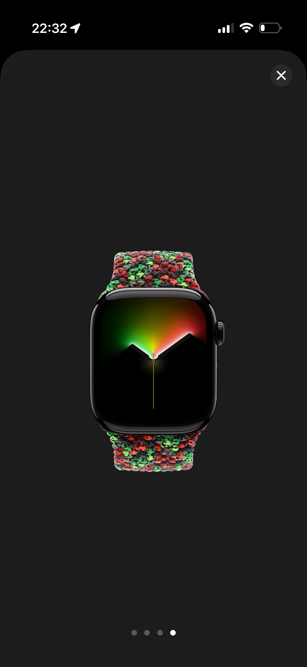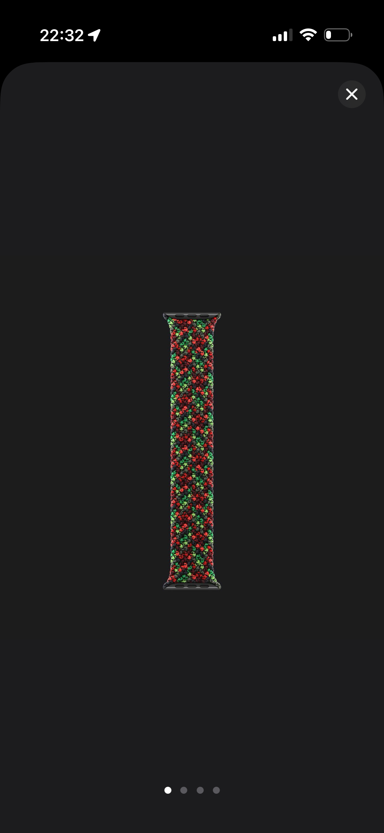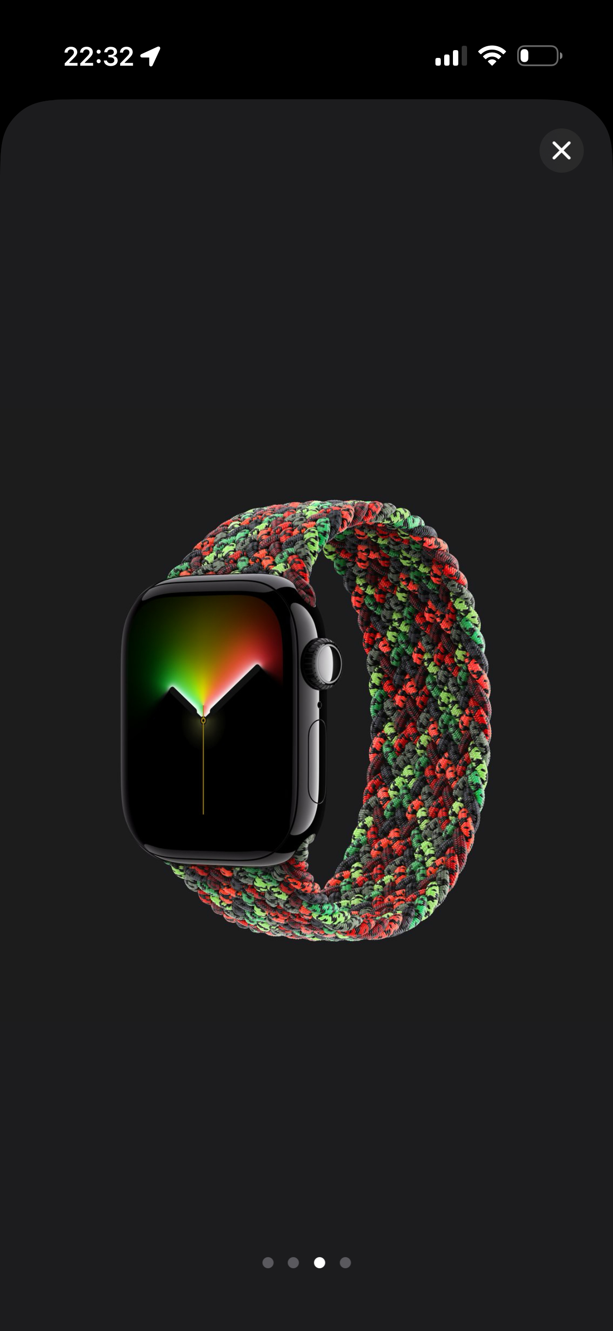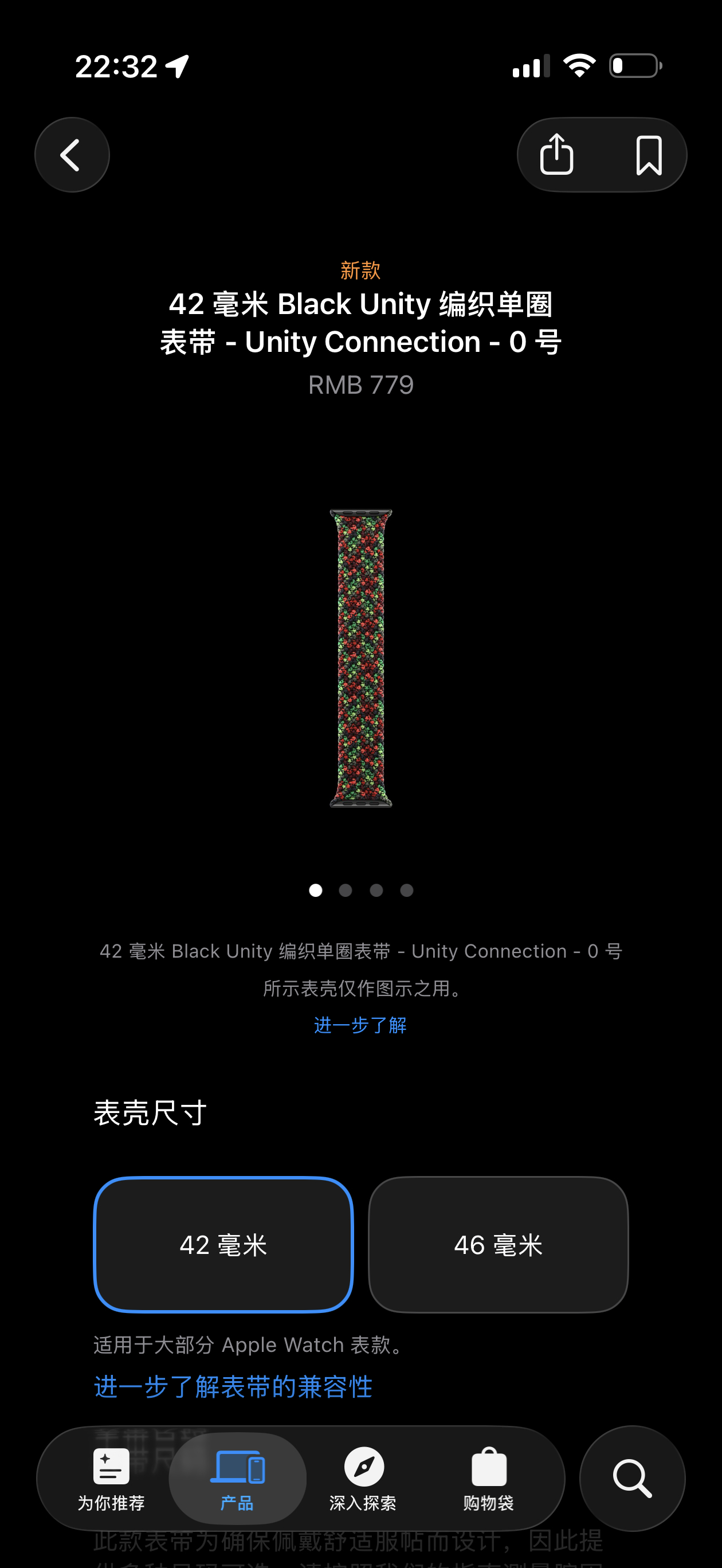 新款Apple Watch 黑色团结表带也一起发布了新款采用单圈编织工艺,深浅不一的黑红绿三色纱线编织在一起。售价依然是 779