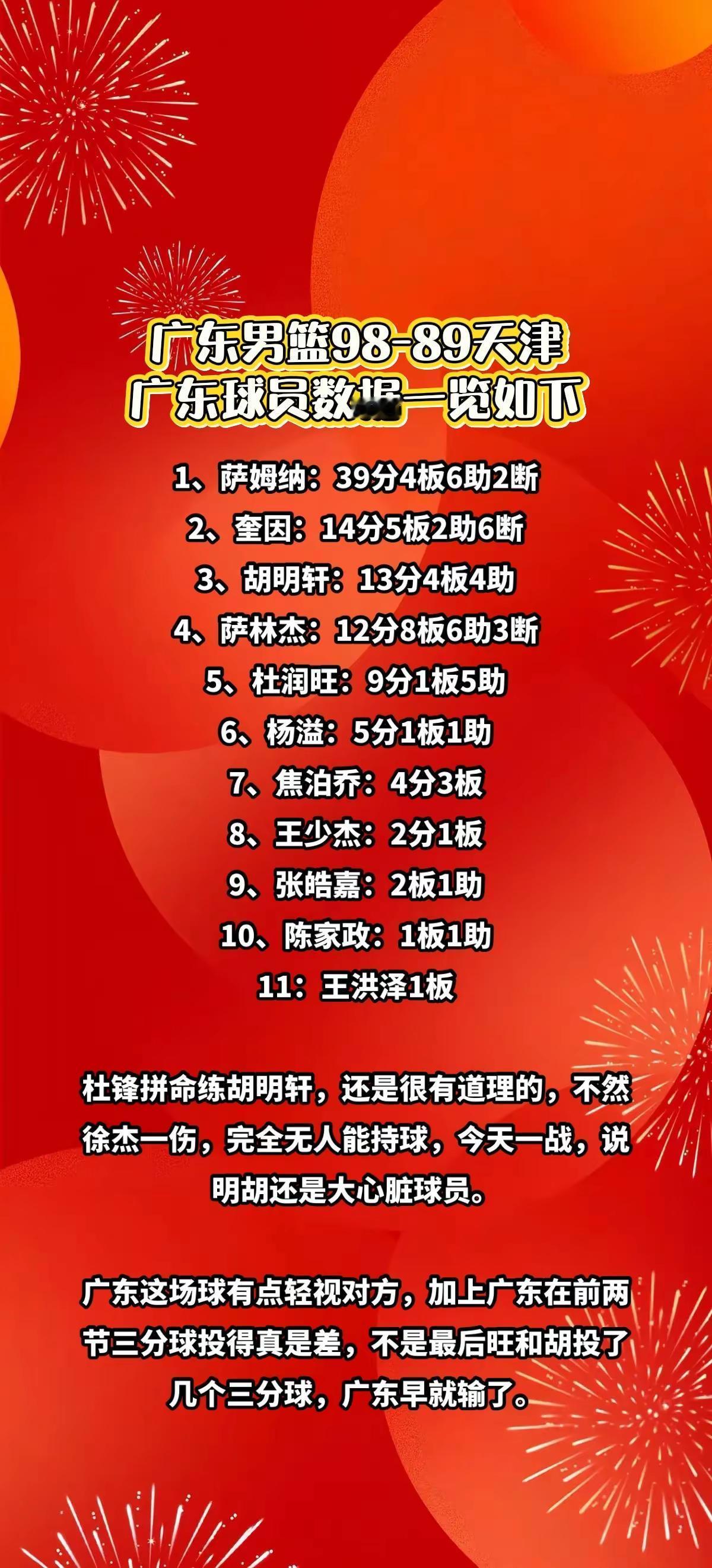 广东男篮98-89天津,广东球员数据一览。广东男篮cba