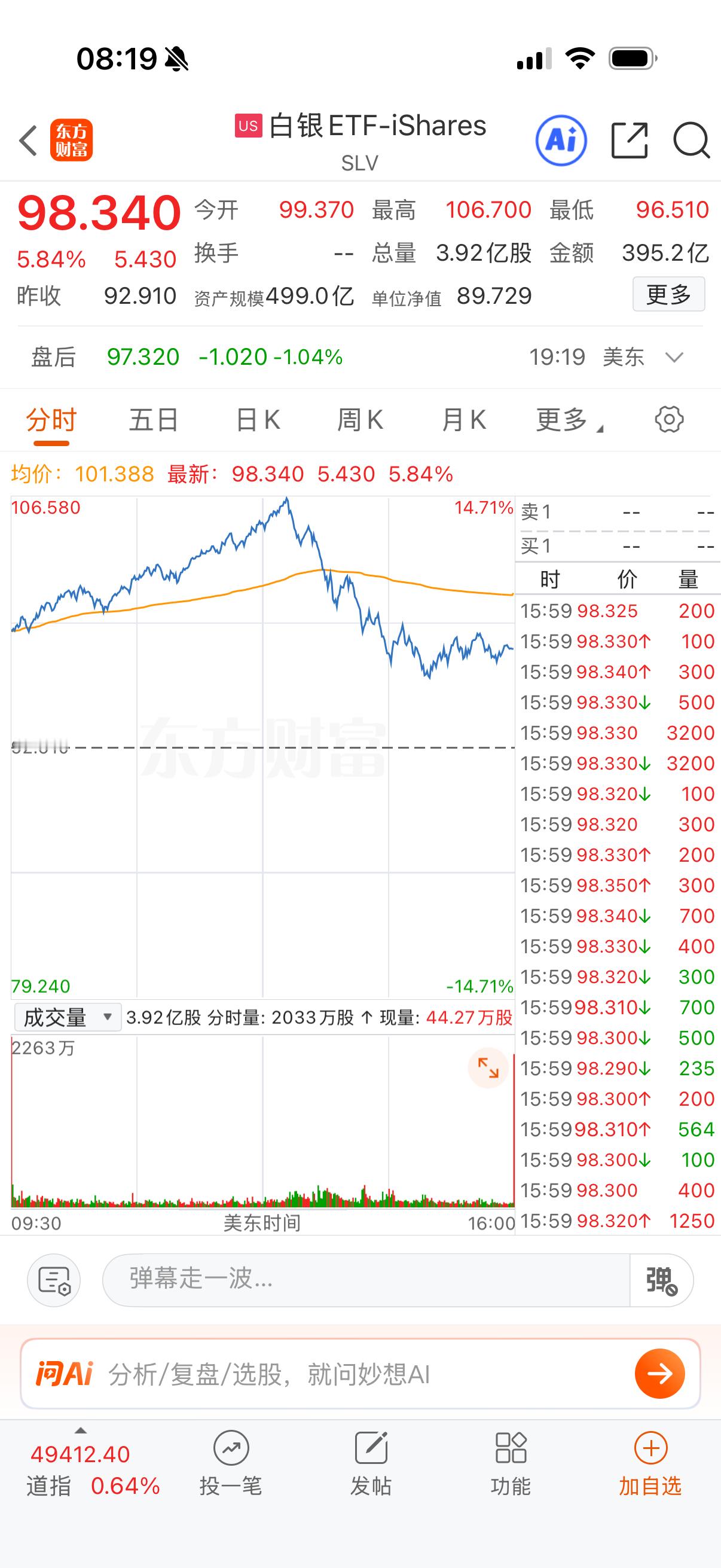 白银一度疯狂涨14点,下半夜回落到3点左右。