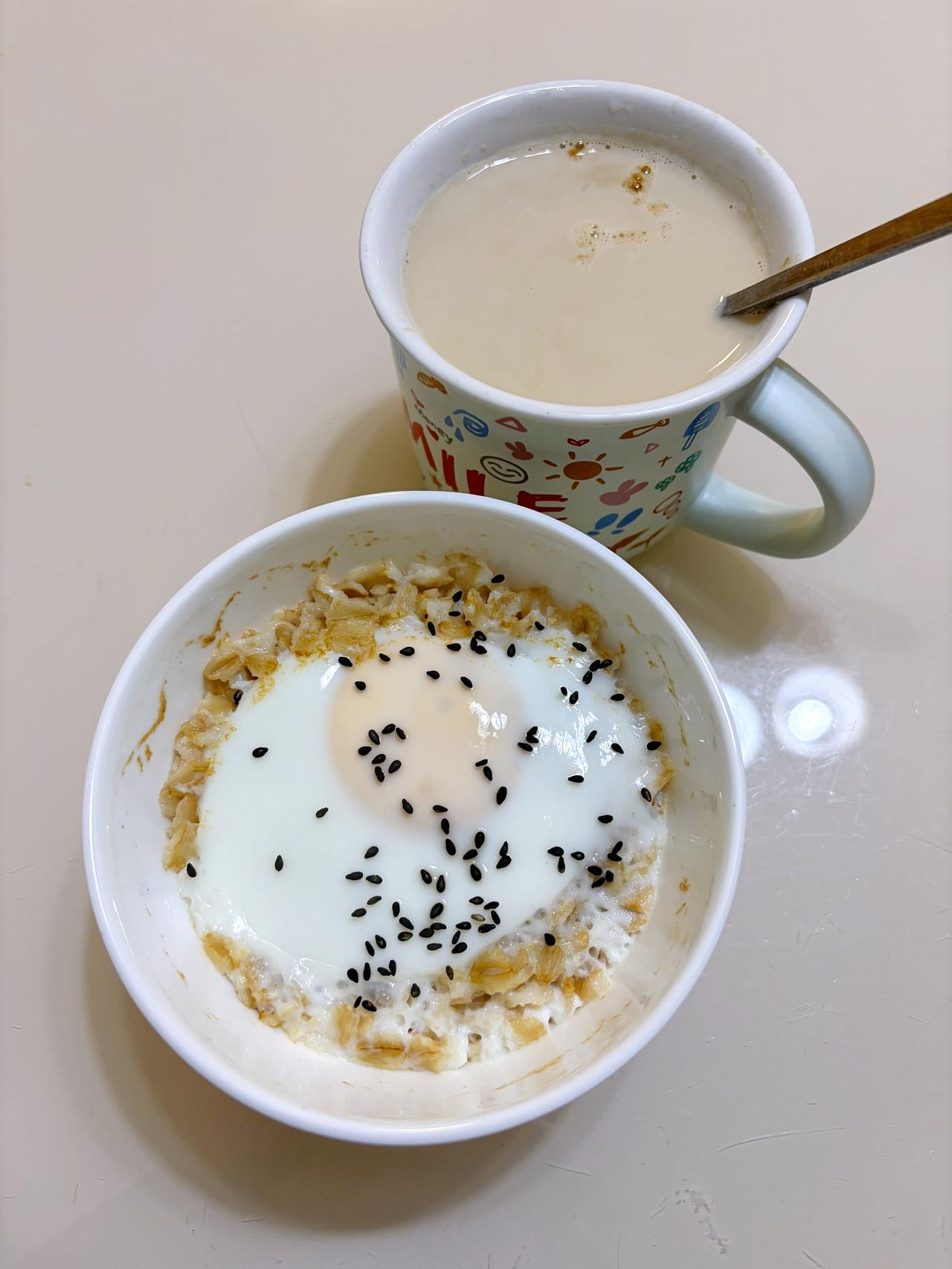 泪水打湿我的减脂餐,继续加油 今日减脂早餐:燕麦牛奶+鸡蛋+拿铁