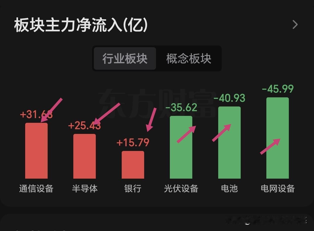 27日午间主力资金动向及加仓榜 今天早盘三大股指低开震荡翻红,重新站上5日线支撑,创业板指数下探了30日线支撑,降温信号继续影响大盘走势。两市成交额1.9万亿元,比昨天缩量3700亿元,主力资金流出660亿元。今天拉银行保险,大家日子不好过! 通信设备与cpo 人工智能重返强势,半导体芯片及材料设备与存储芯片走强,人形机器人趋弱,卫星通信与Ai应用震荡整理,新能源板块集体下跌,它与cpo有跷跷板效应,光伏产业把前天的涨幅基本吃完。 能源金属板块,电池储能,光伏设备,猪肉,煤炭,稀土,创新药,人脑工程,电网设备,地产,电力等大多数板块跌幅较大。 主力资金流入靠前的板块有 通信设备,半导体芯片,银行保险,光模块5G等。 主力资金流出比较大的板块有 锂电池新能源车,光伏设备,电网设备,有色金属,汽车零部件机器人,软件开发等。 今天板块分化明显,波动加大,老登板块下跌,新登板块分化,赚钱效应不好,看下午能不能改善。 点赞转发评论关注,投资理财不迷路。